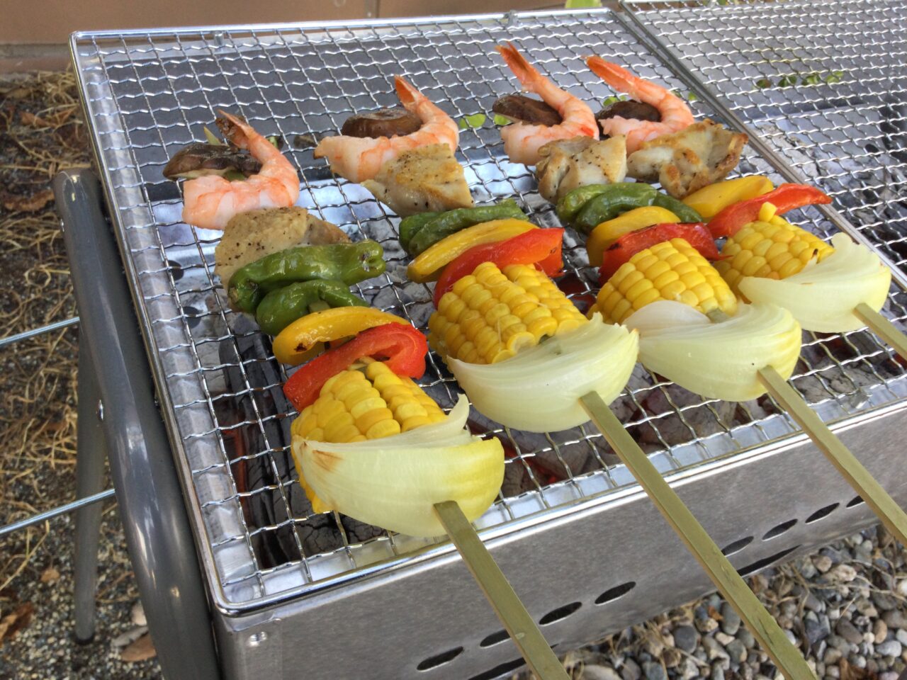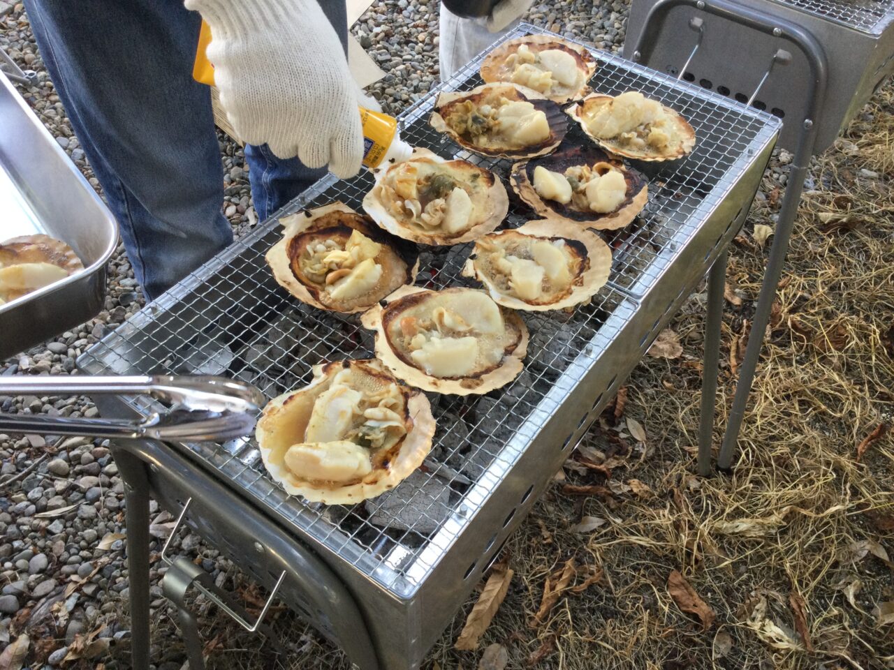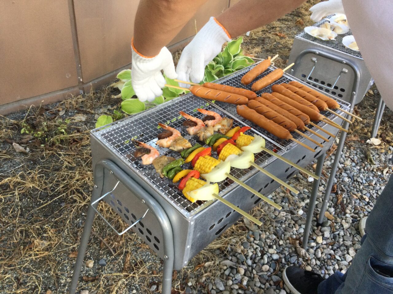 桜の木の下に準備して見えるところでBBQの準備もスタートです‼️