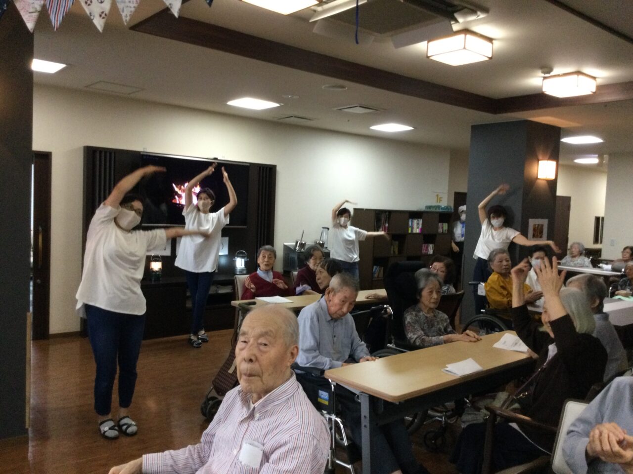 最後にみんなでマイムマイム??を!座っている方もその場で足踏み手拍子で楽しみます?✨