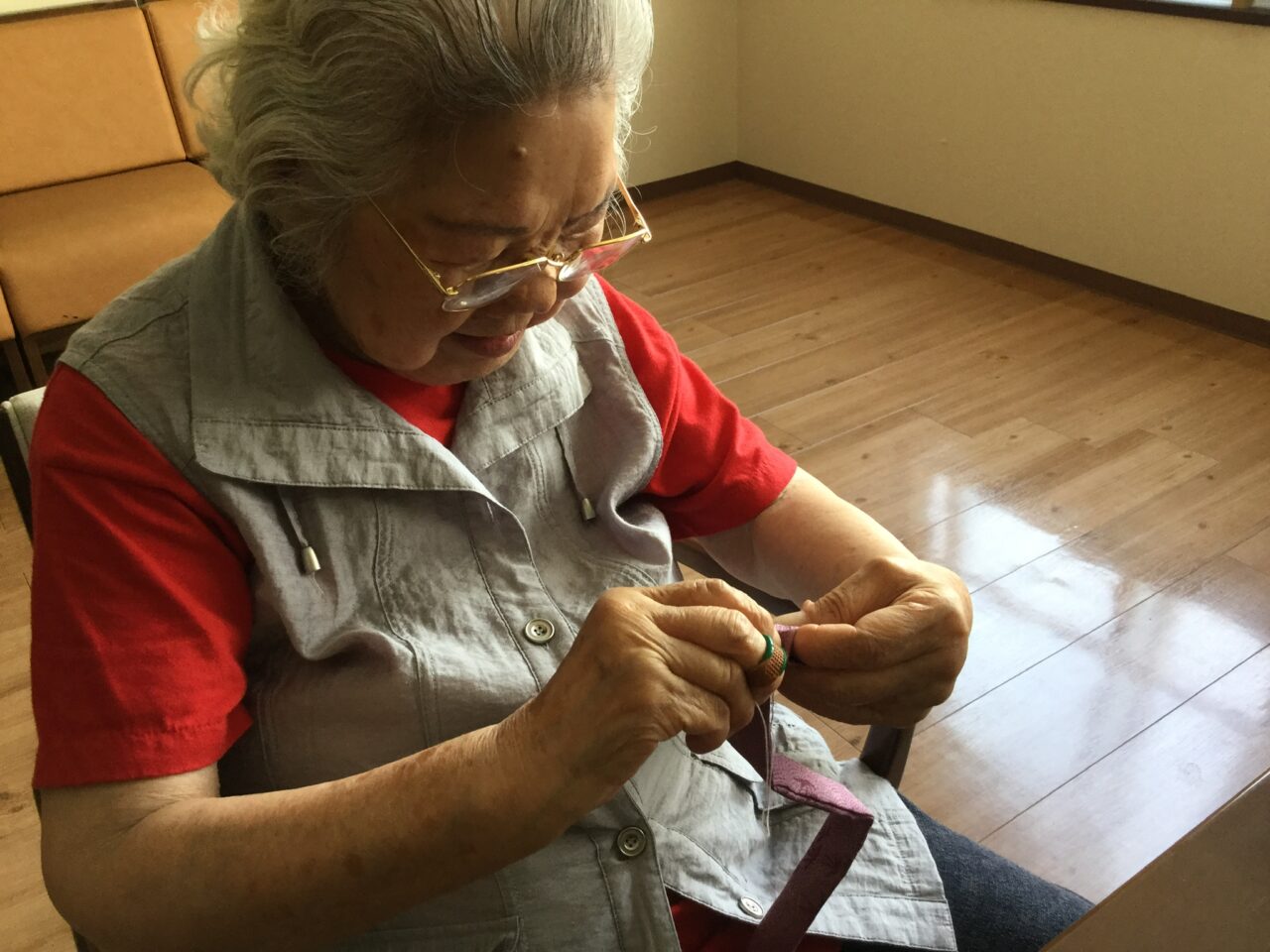 手芸クラブの皆さんの真剣なお顔、いいですね。素晴らしい出来のちゃんちゃんこ。みなさんが着るようになって欲しいと思います。しっかり食べて笑って穏やかに生活し、長生きしてください。