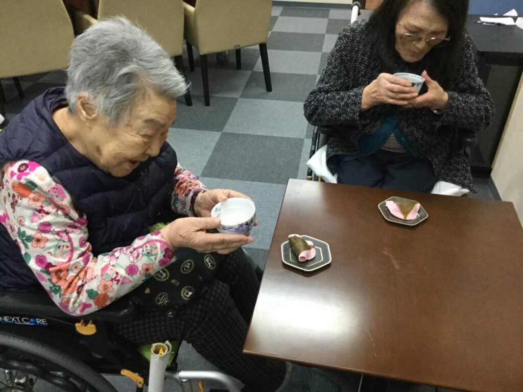 午後からはラウンジをオープンし、桜餅と桜茶を提供しました?