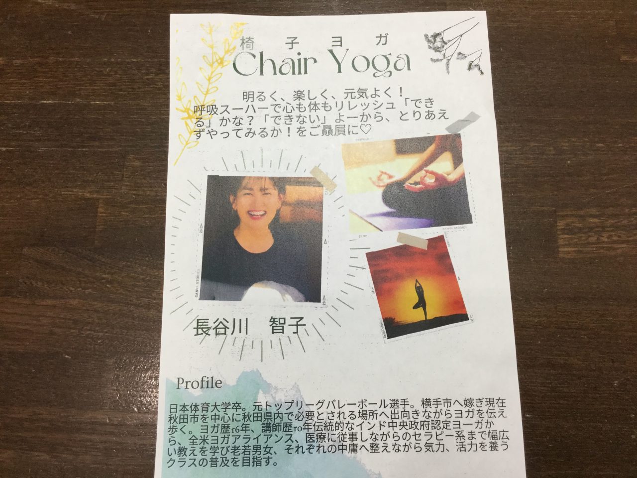 今回、秋田市を中心に活躍されています、長谷川智子先生にきて頂き、座ったまま出来る椅子ヨガを行なって頂きました‼️