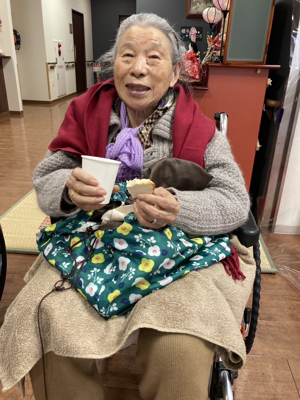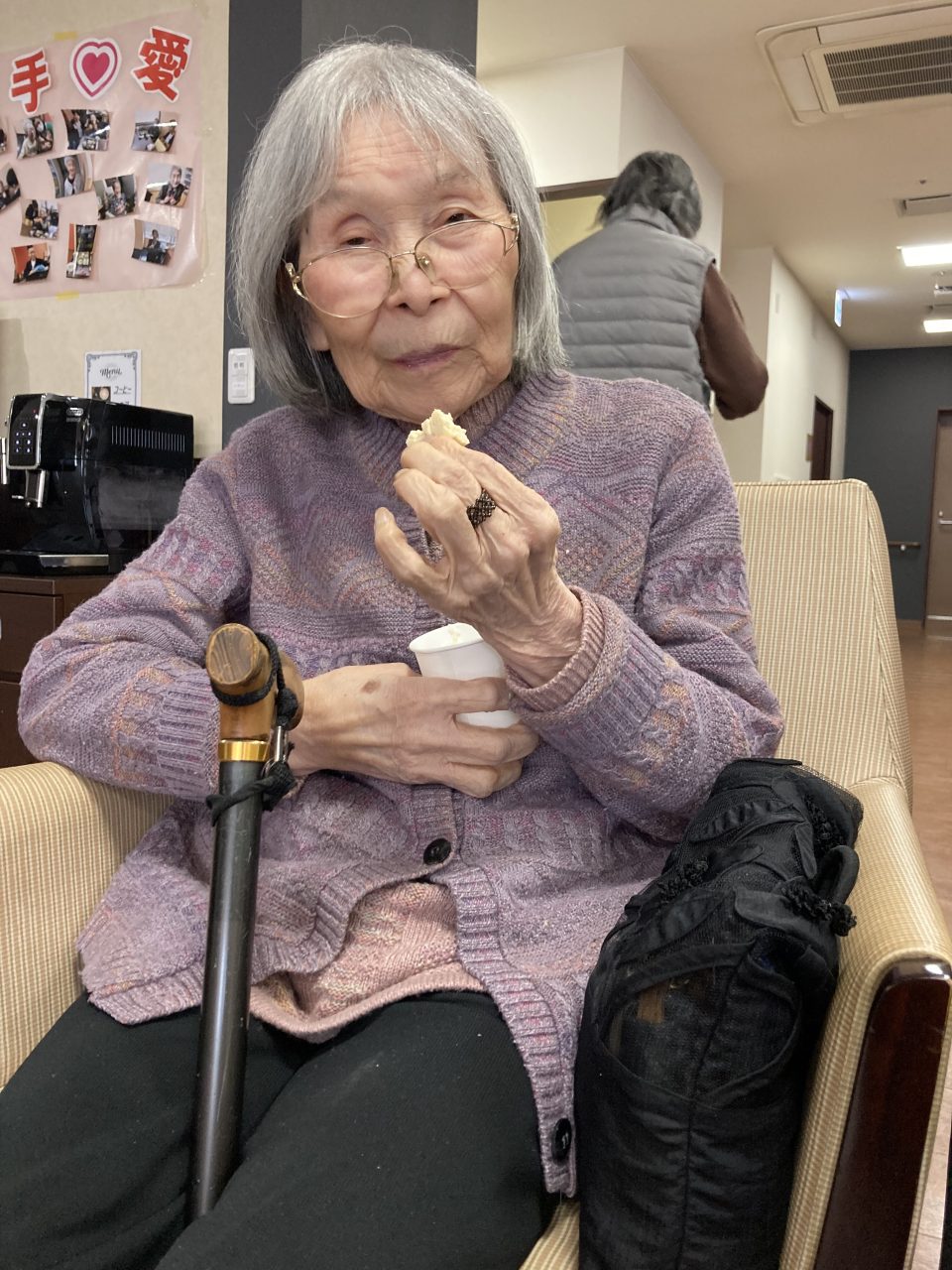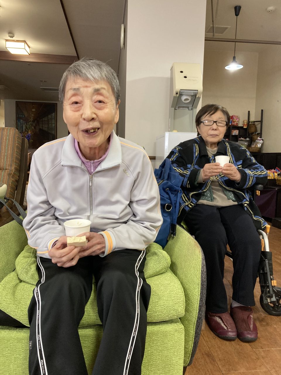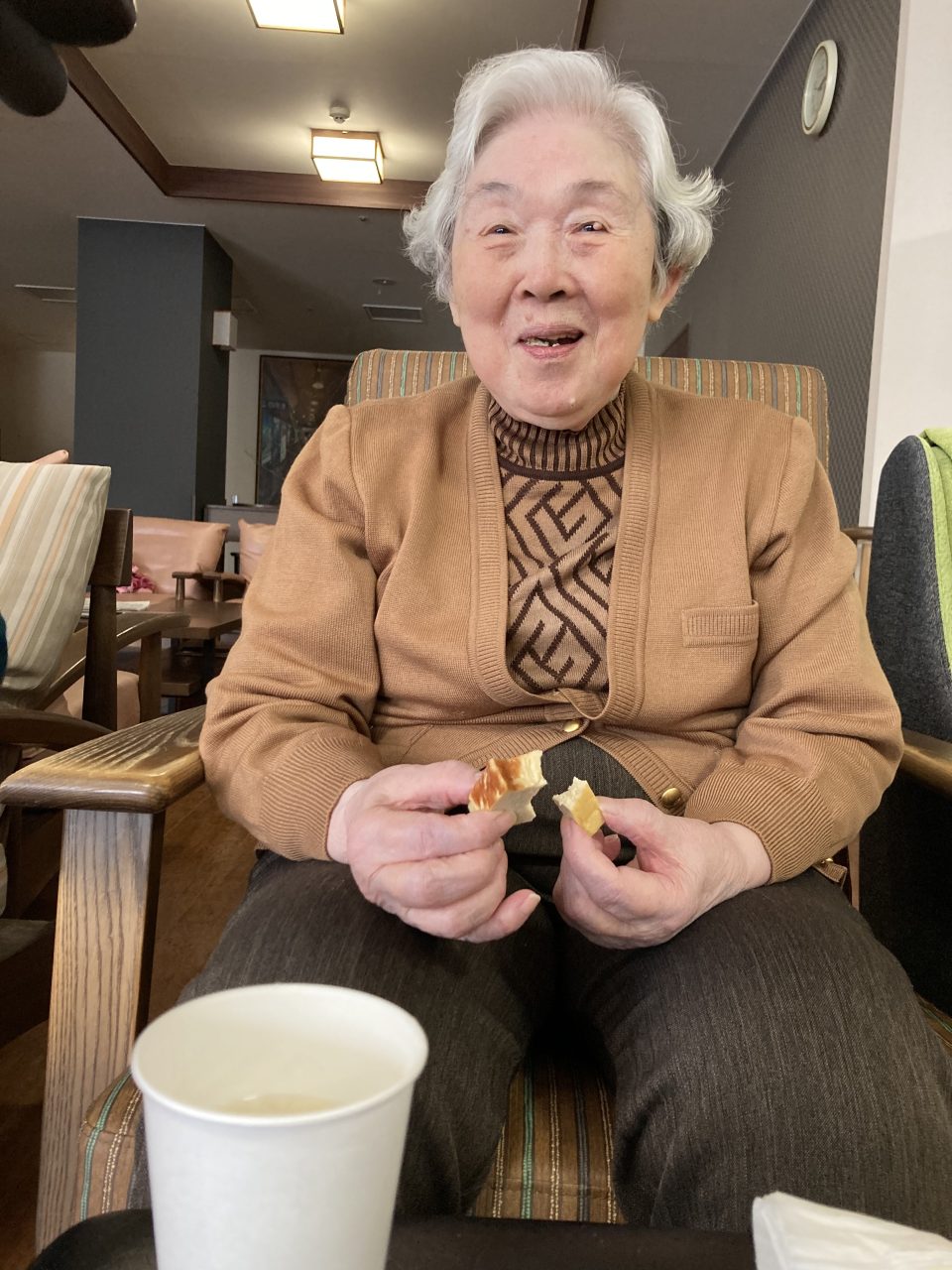 利用者の皆さんには、辻パートナー手作りの甘えっこと豆腐カステラでゆっくりと過ごしていただきました〜?