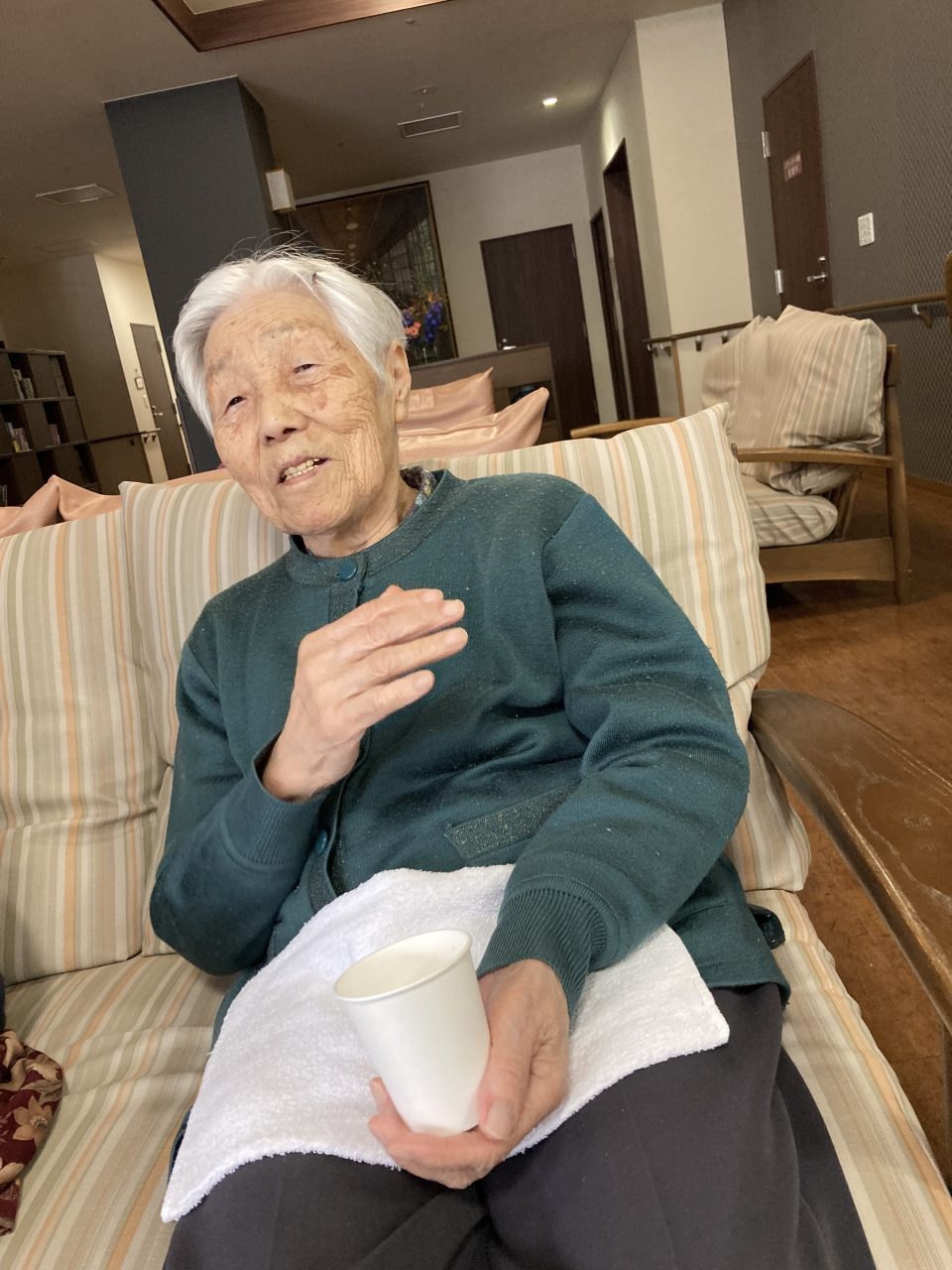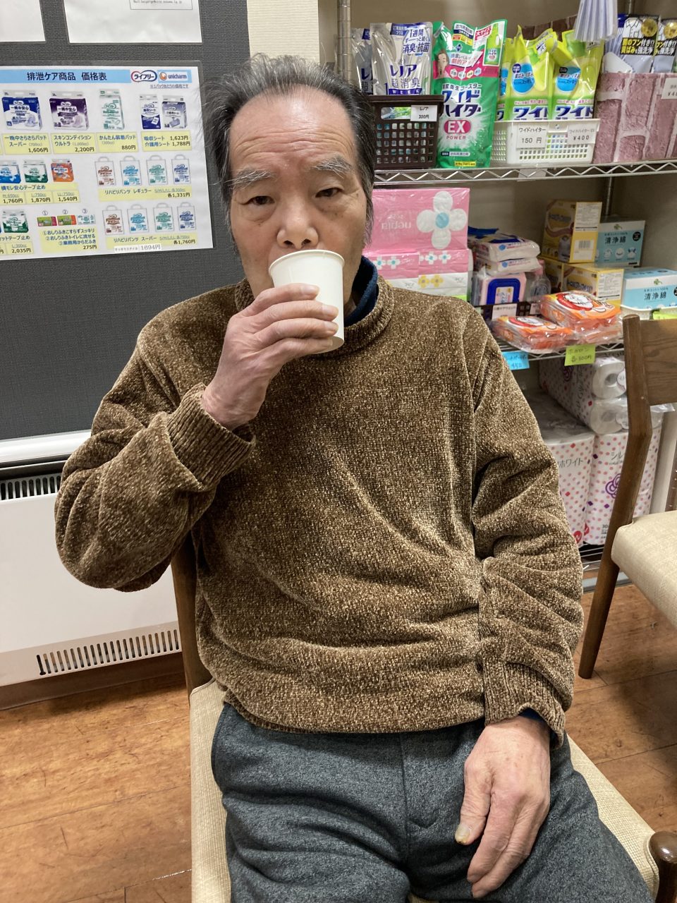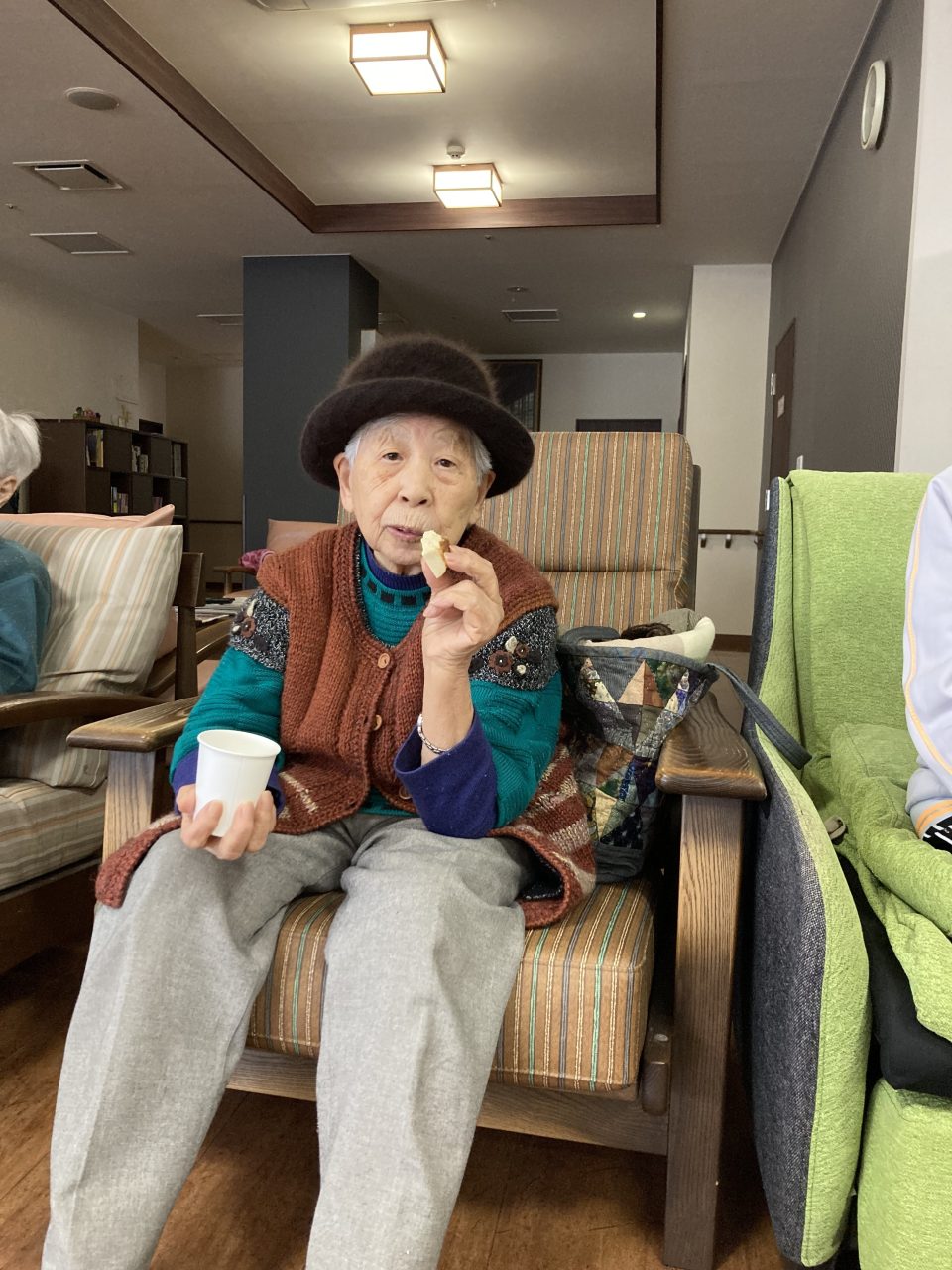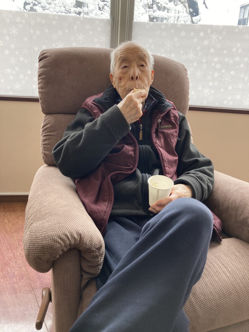 利用者の皆さんには、辻パートナー手作りの甘えっこと豆腐カステラでゆっくりと過ごしていただきました〜?