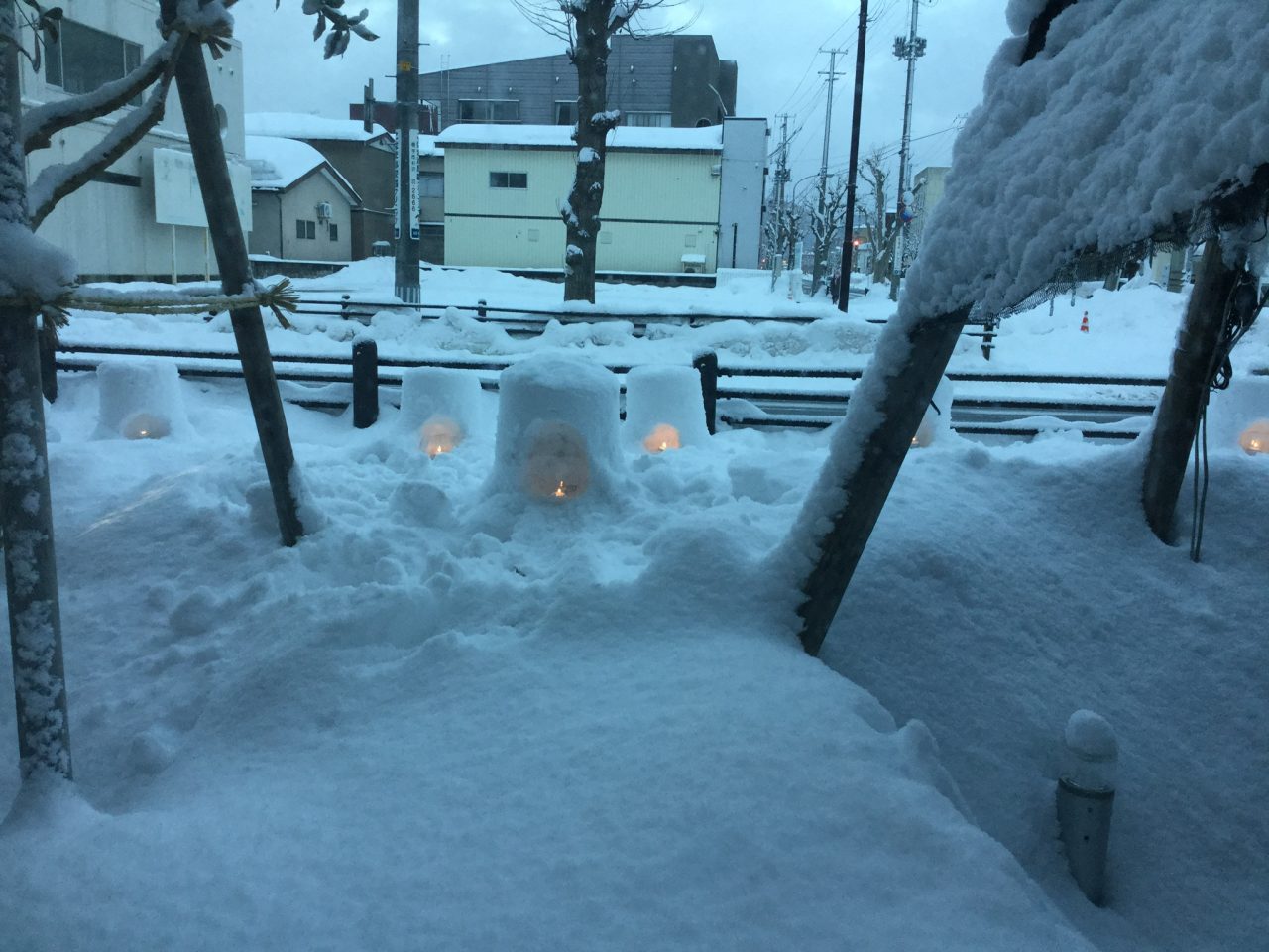 さらさ横手でもかまくらを盛り上げる為、ミニかまくらを施設管理の協力の元作成しました?