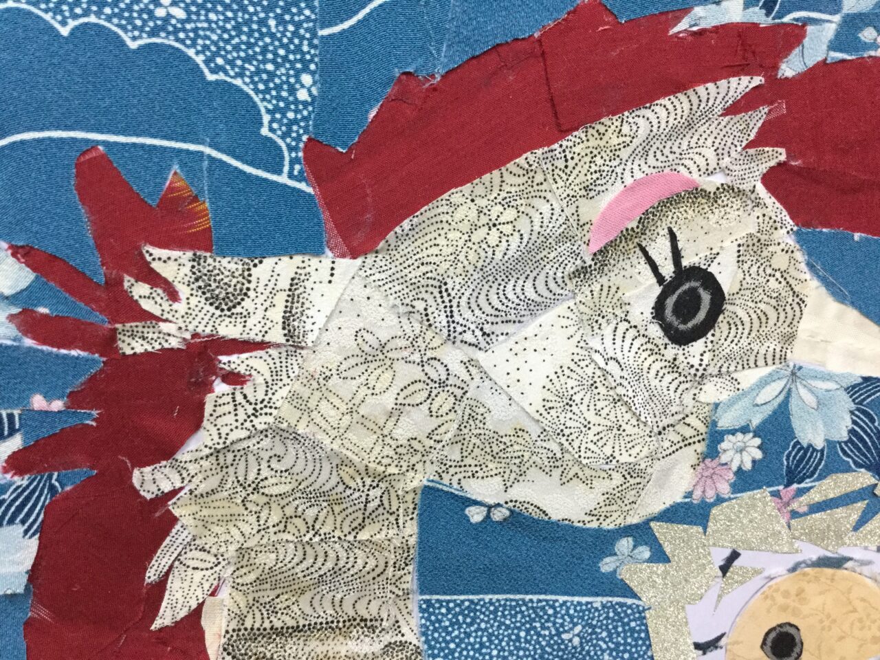 Oさんのご家族さんから頂いた端切れを使って新年のタペストリーを作成いたしました!!