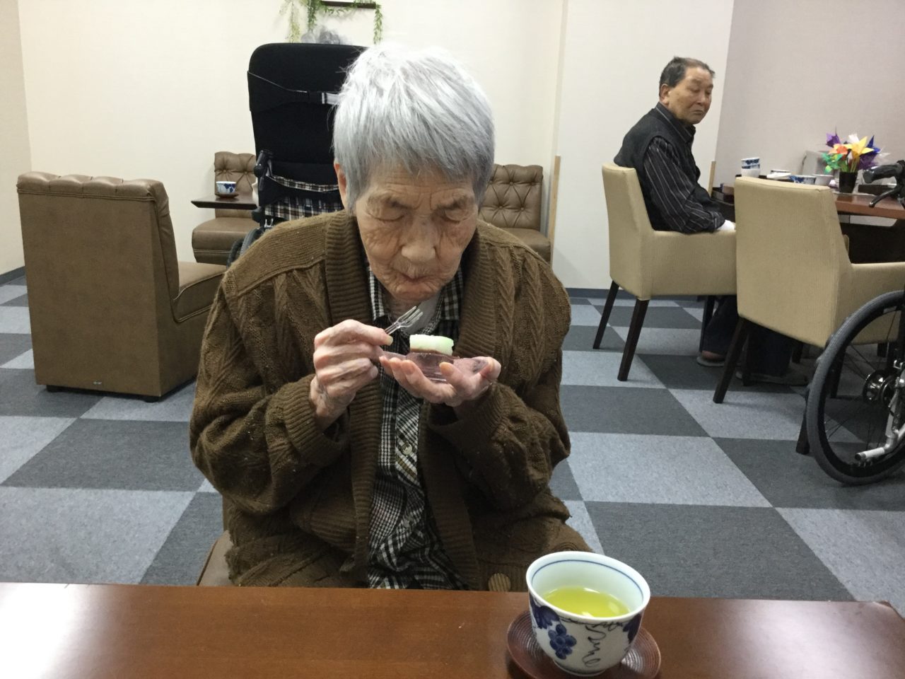 甘い羊羹にさっぱりとした後味で何個も食べられる和菓子に、利用者の皆さん驚かれながらも「うめごど」と召し上がっておりました?