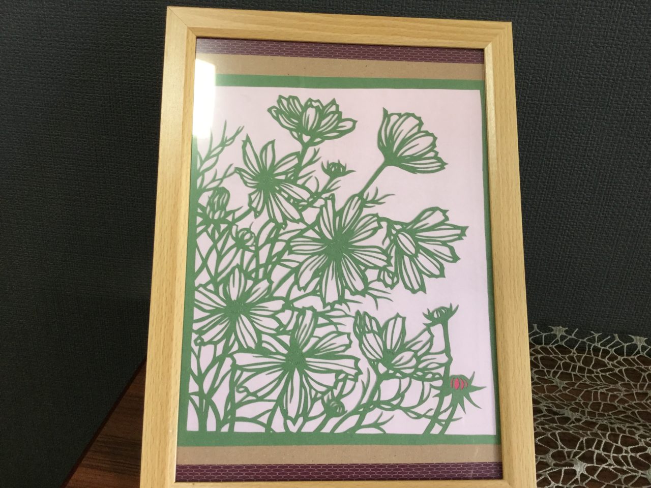 菊、コスモスの切り絵繊細でとても素敵で心が和みます。