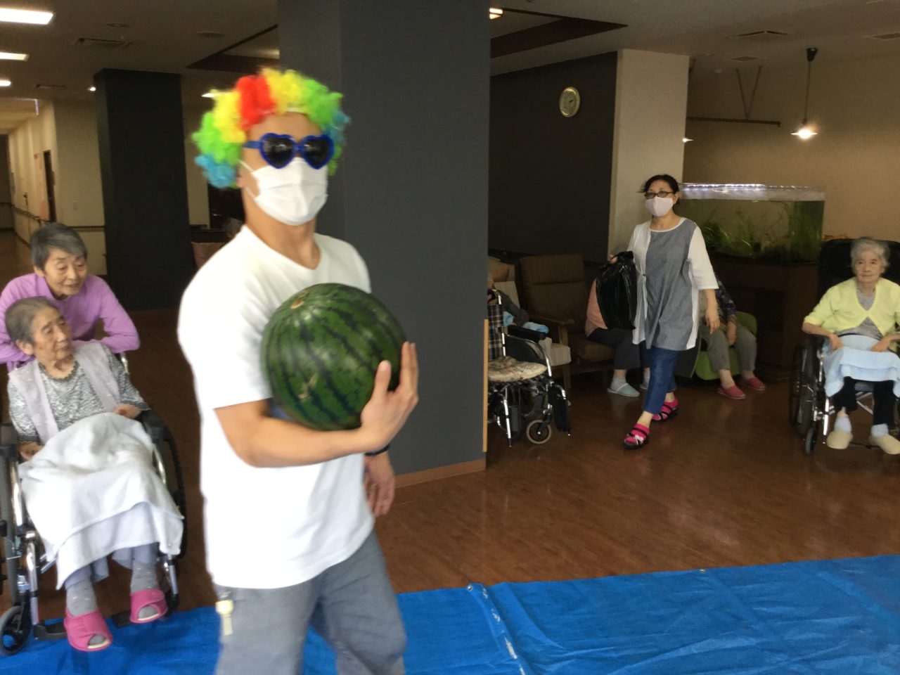 勢いよくスイカ割れ、皆さん喜び‼️?