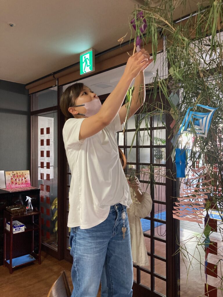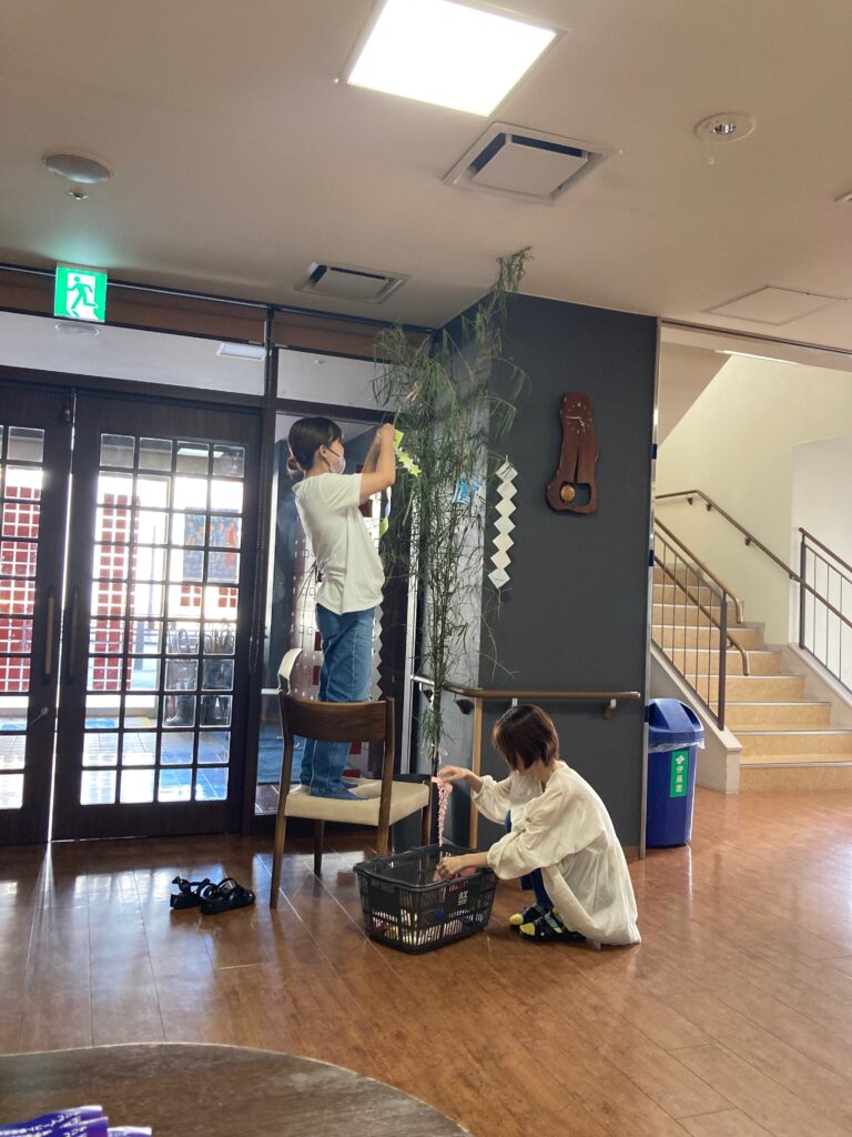 パートナーや利用者の皆さんにご協力していただき、七夕飾りを作成!
