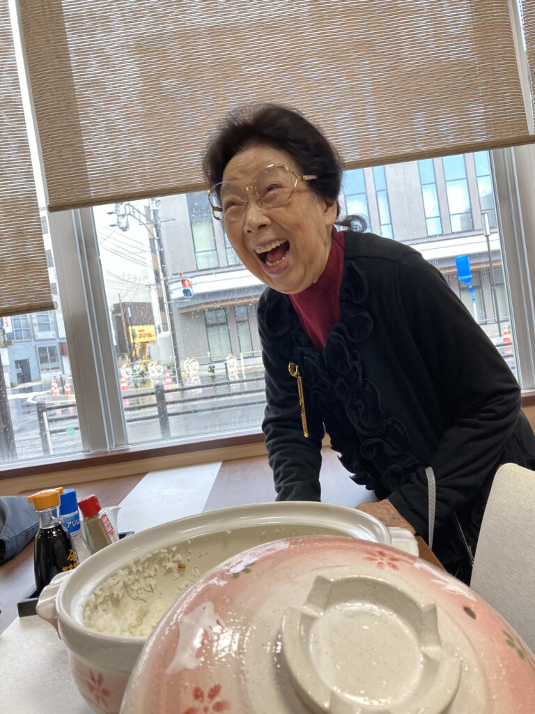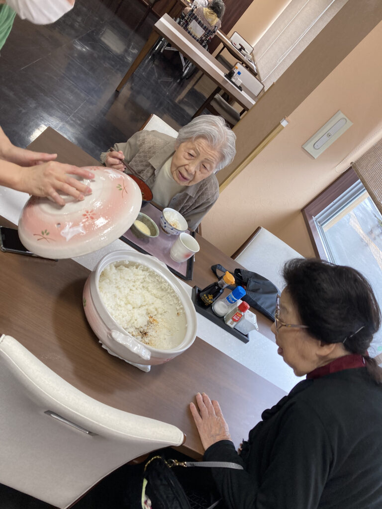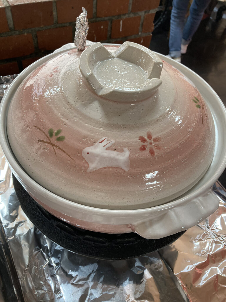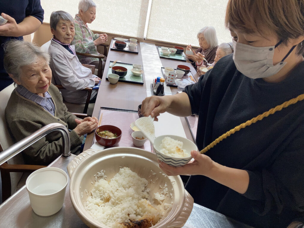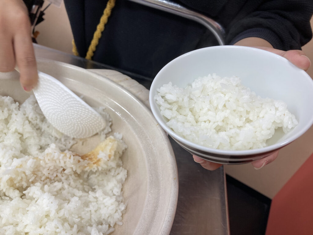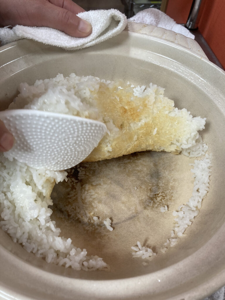 昔はよくおこげ食べてましたが、いまはなかなかできませんね。炊飯器では、おこげできないので、土鍋ご飯炊いてみよう。皆さんニコニコですね。