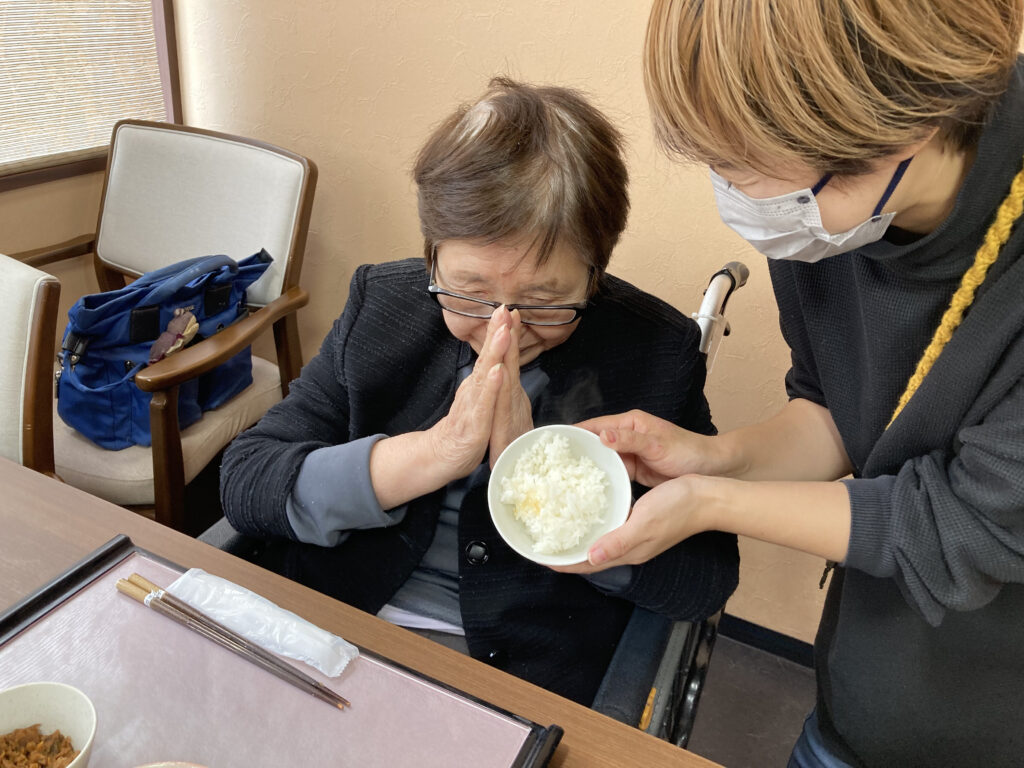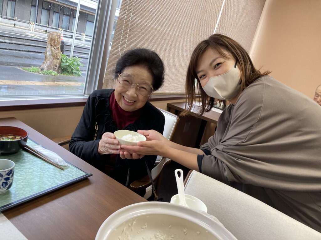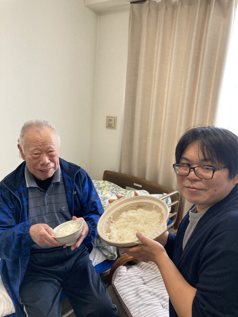 今日の昼食はOさんのご家族さんから頂いた新米の『あきたこまち』を