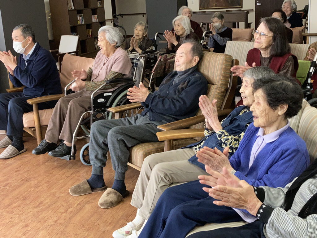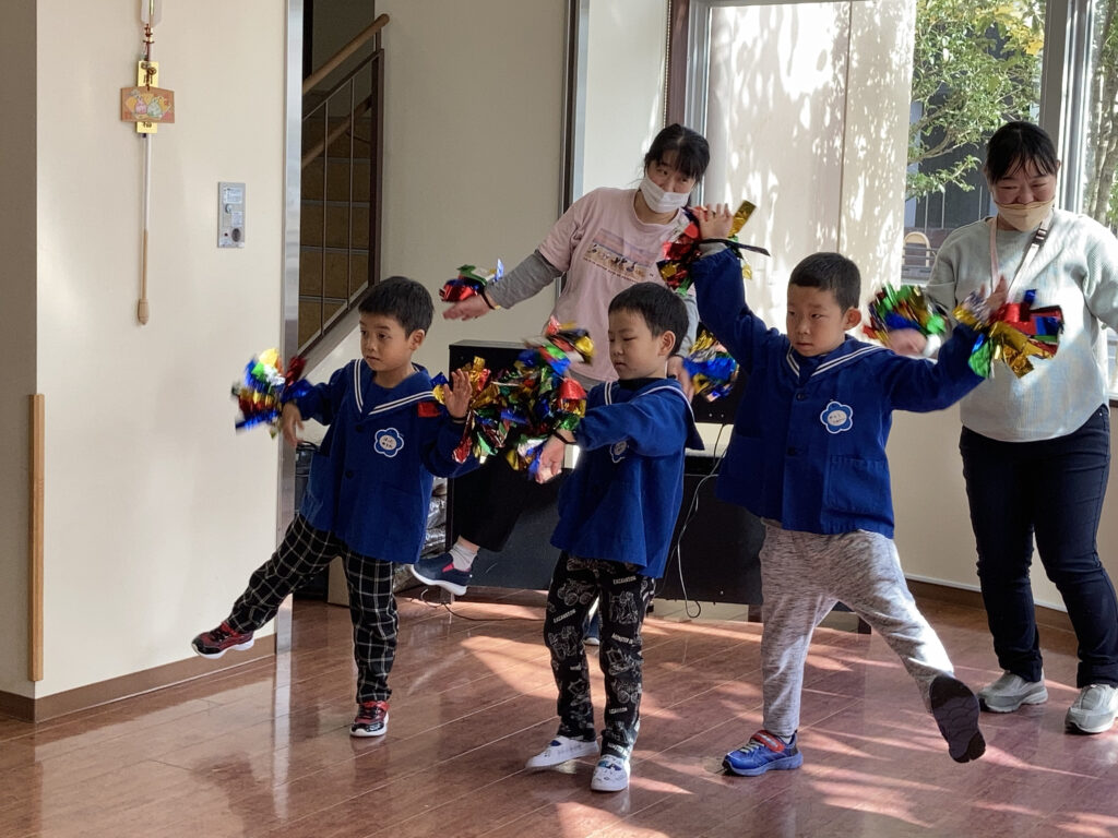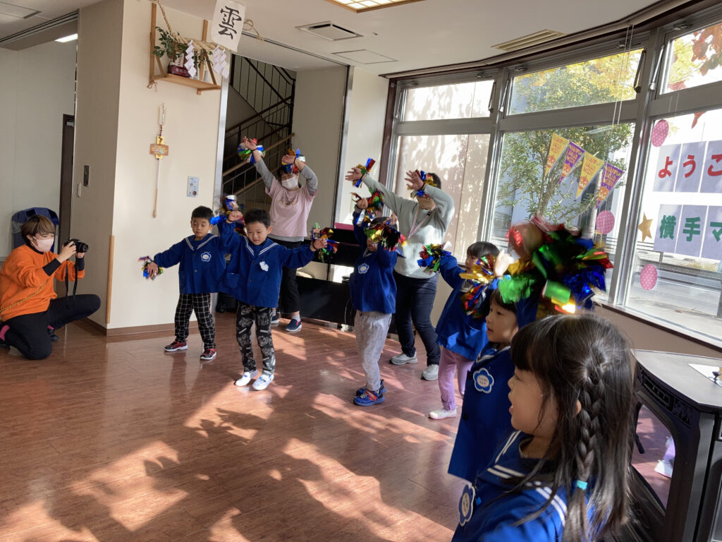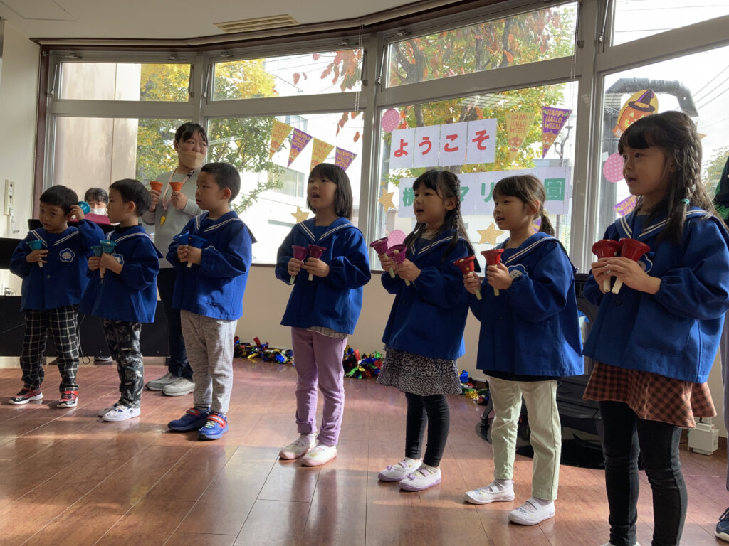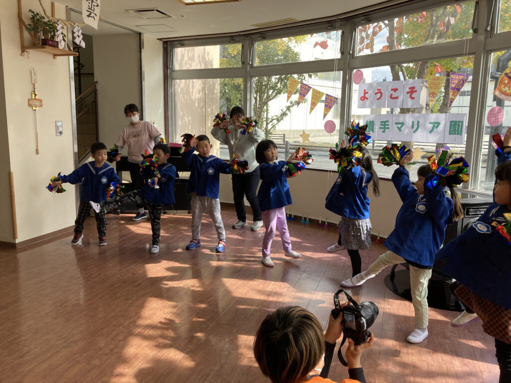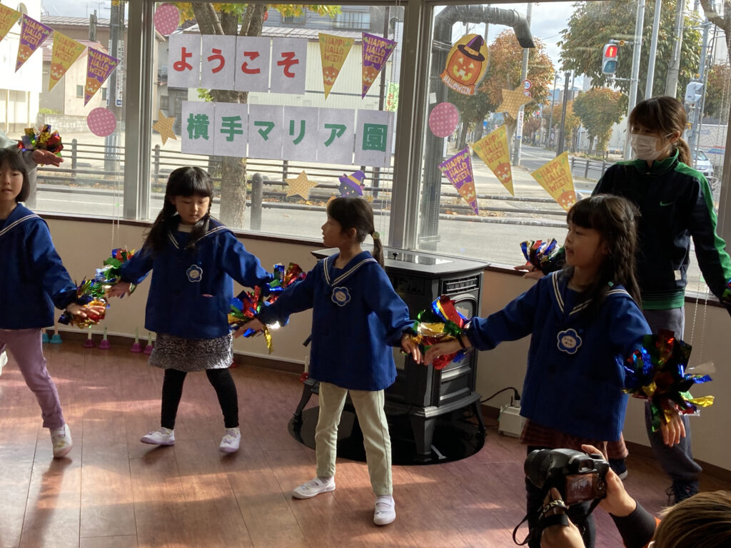 そしてさらさ横手の近くにある「横手マリア園」のゆり組さん(年長さん)がお遊戯とハンドベルを披露しに来てくださいました!コロナでストップしていた交流も復活でウキウキです?