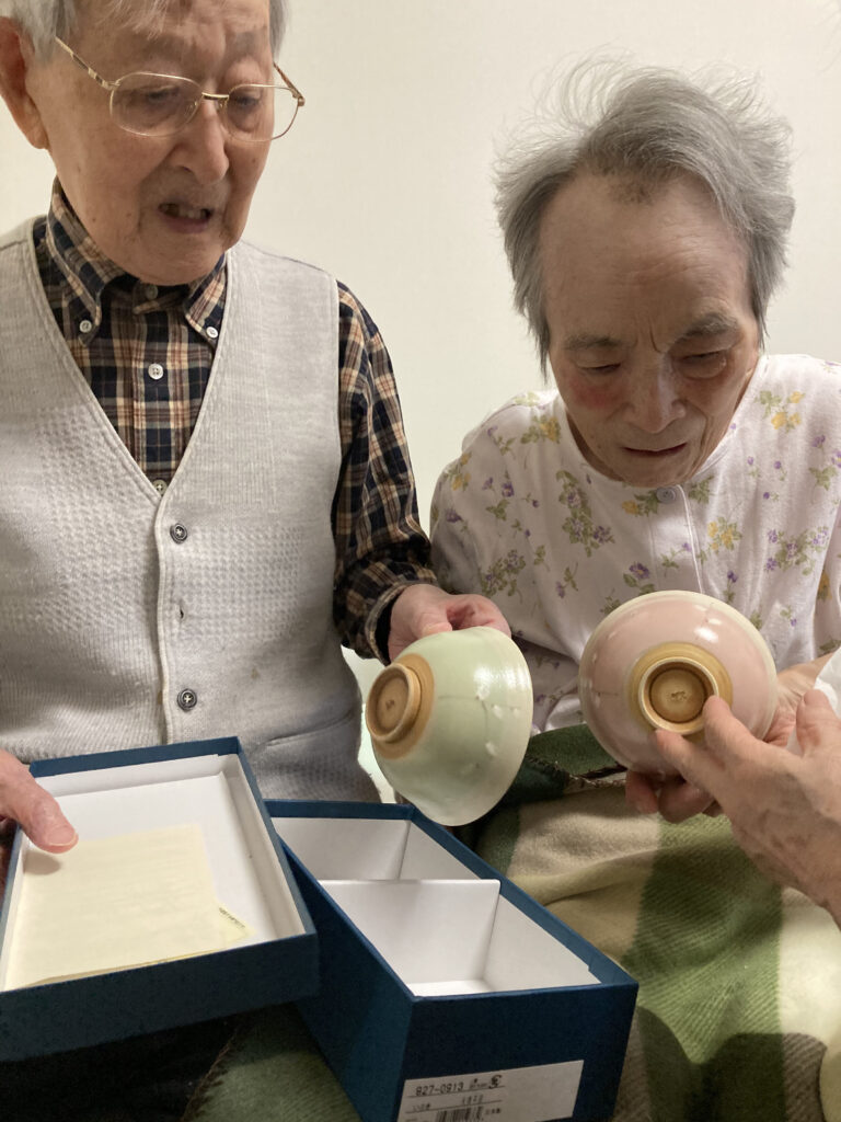 祖父母が並んで笑ってる姿に大変心が温まりました。素敵な夫婦茶碗ですね✨いつもありがとうございます。