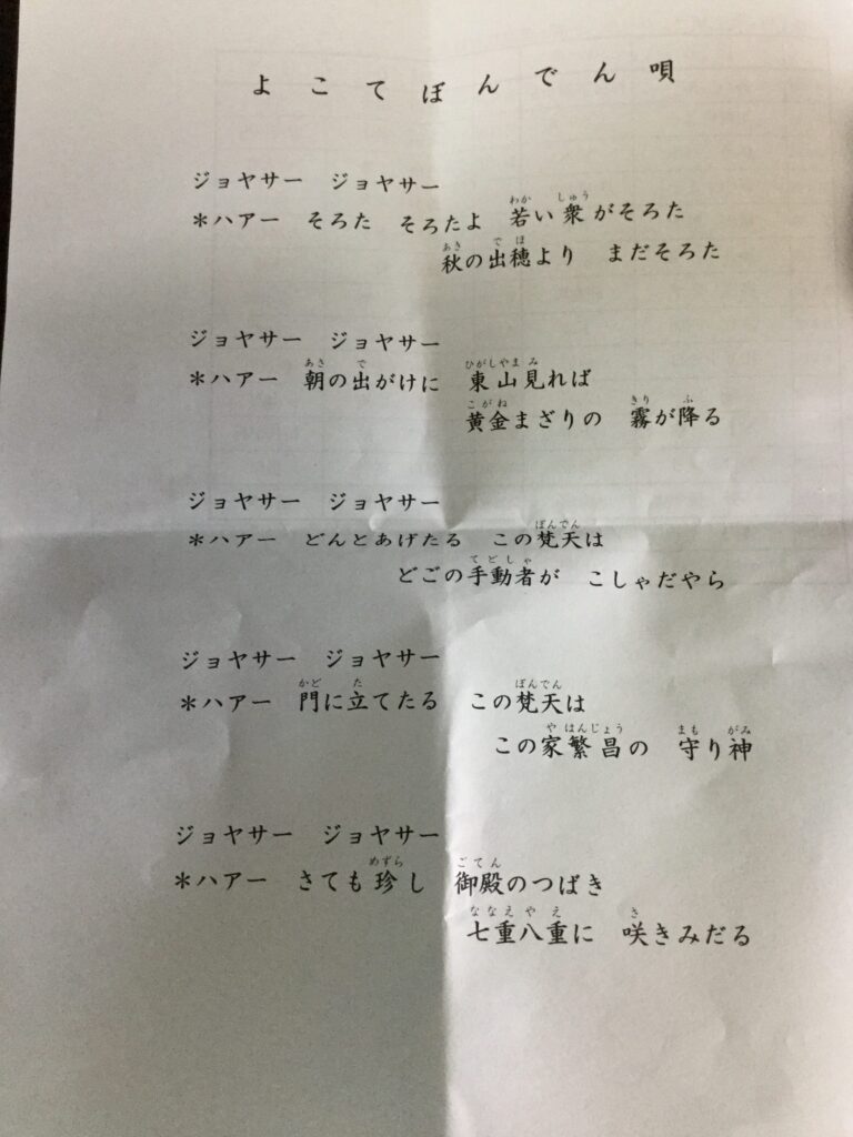 そんな「ぼんでんコンクールの日」、「ぼんでん奉納」の日に代表して「ぼんでん唄」を披露するたった一人を決めるのが・・・