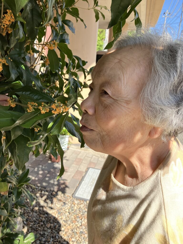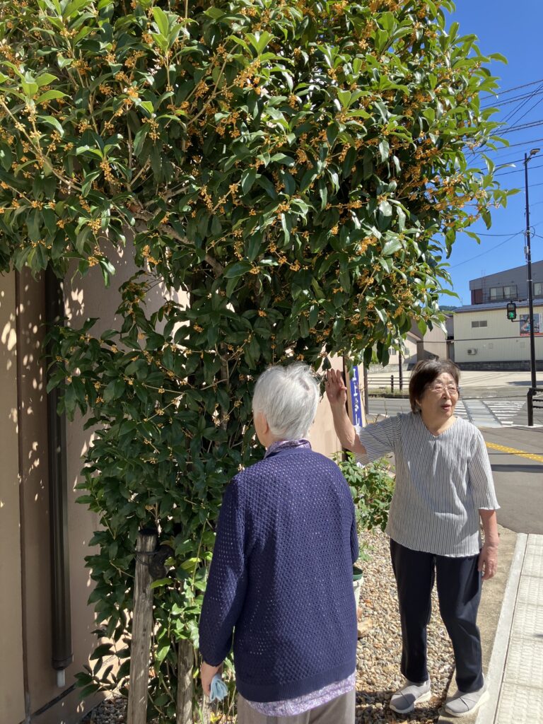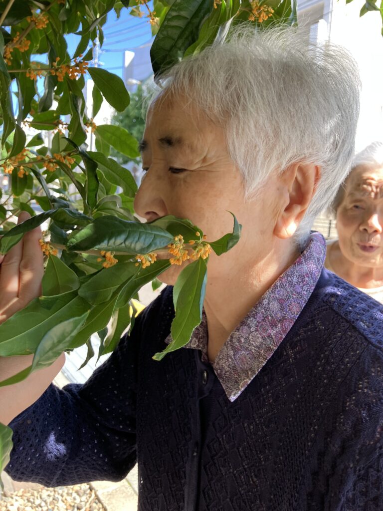 花の香りに誘われて外へ出て確かめる利用者さんも💕
