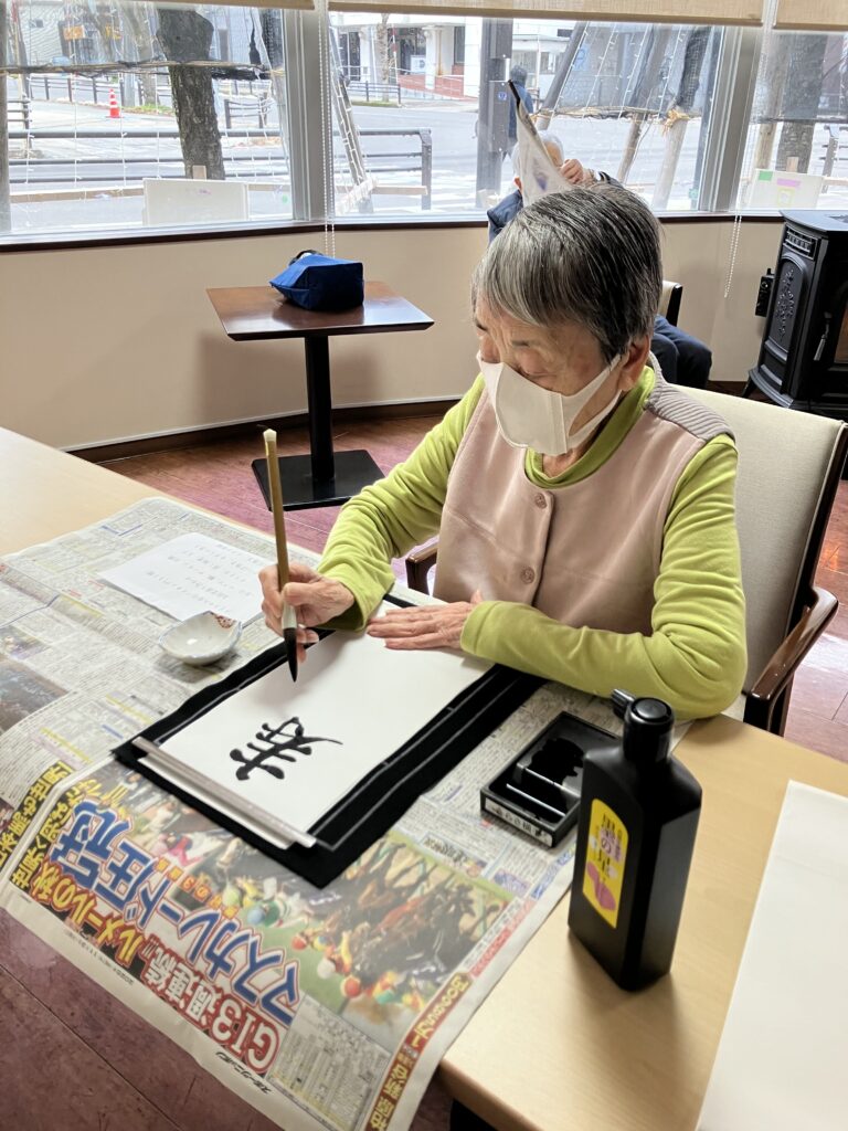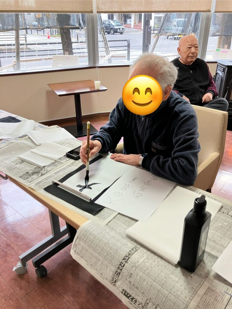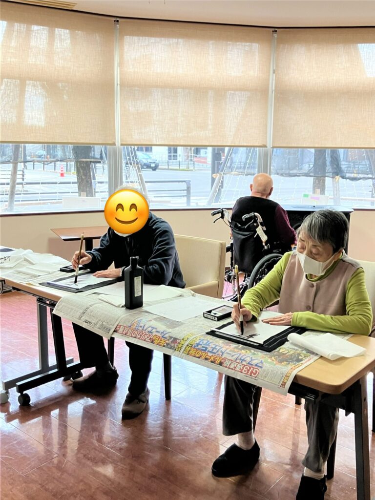 通りかかった利用者さんも「Oさん、前にも書いてたけどとっても上手よね〜」とおっしゃってくださいました。今回初めてのYさんもやればできるもんだなと言いながら楽しまれていました😊