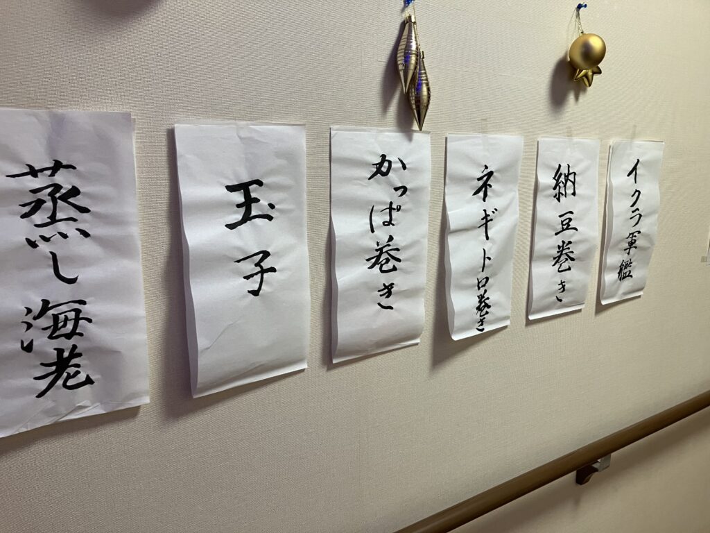 こ、このおしながきは!そう先日の書道でOさんにしっかりと書いて頂きました☆