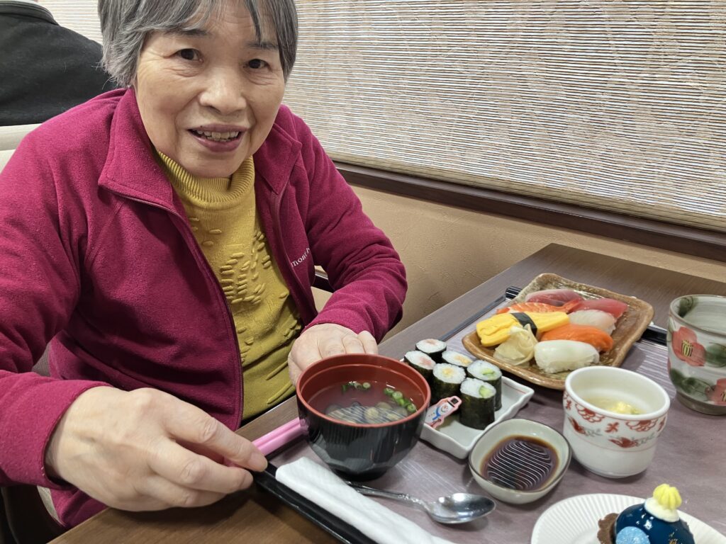 茶碗蒸しも大きなエビが入っていて最高!!しじみのお吸い物やケーキバイキングに皆さん大満足でした(≧∇≦)