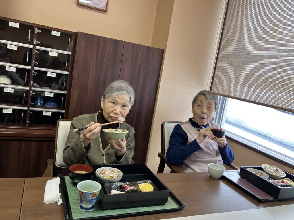 か今日のお昼は納豆汁!お赤飯におせち料理!!