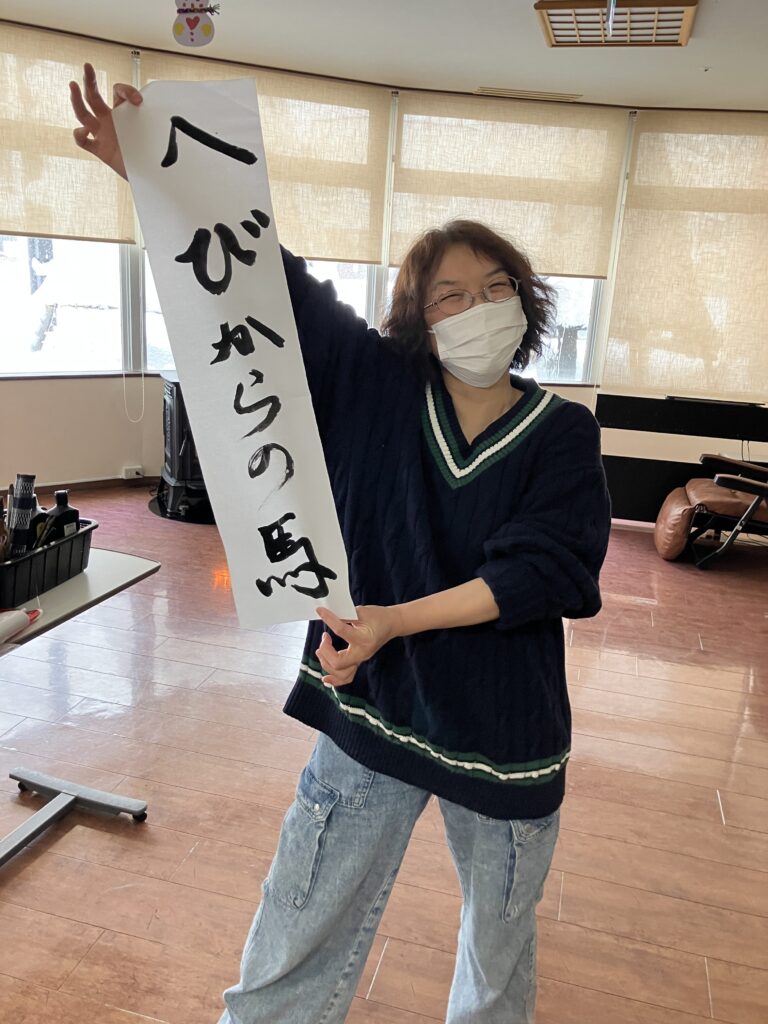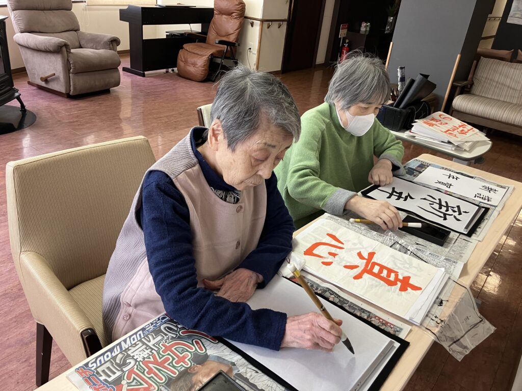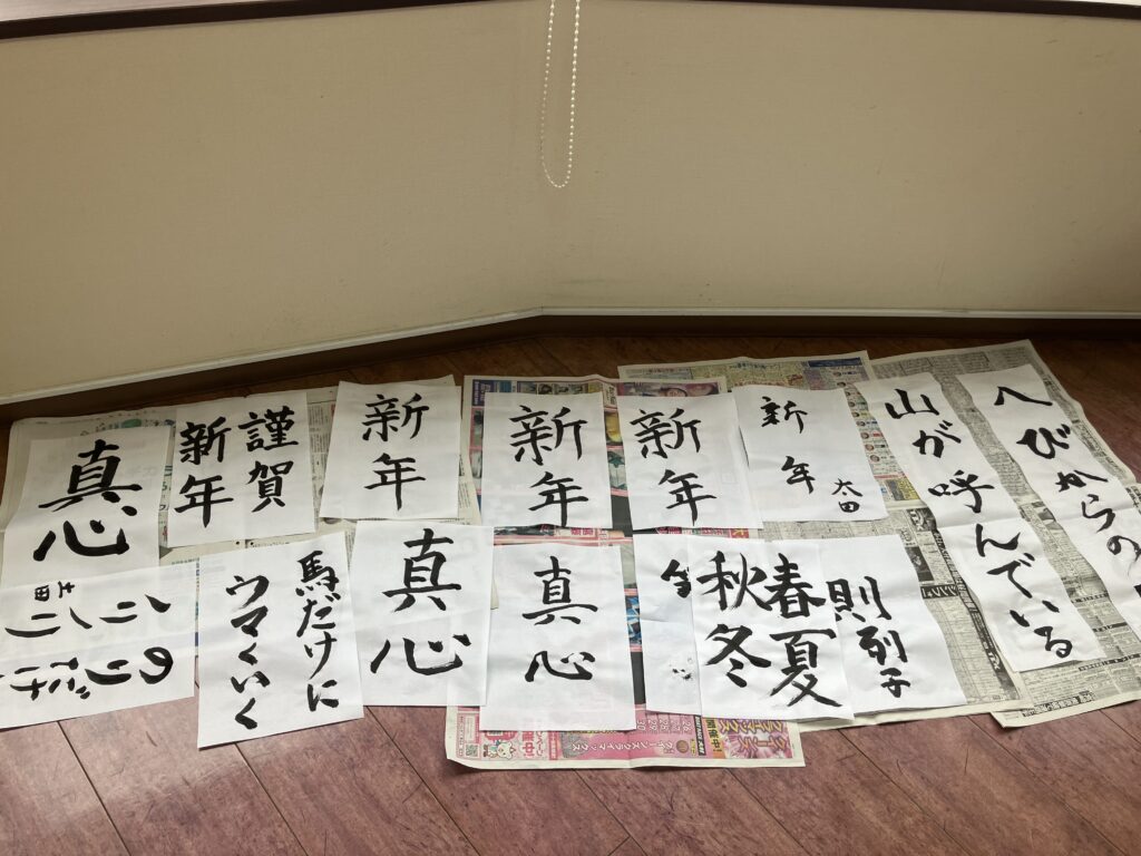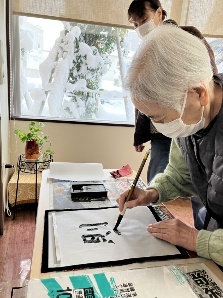 新年の挨拶を交わし合い、ロビーにて書き初めを楽しみました!皆さん今年の目標や、思い思いの言葉を書いて大笑い(≧∀≦)