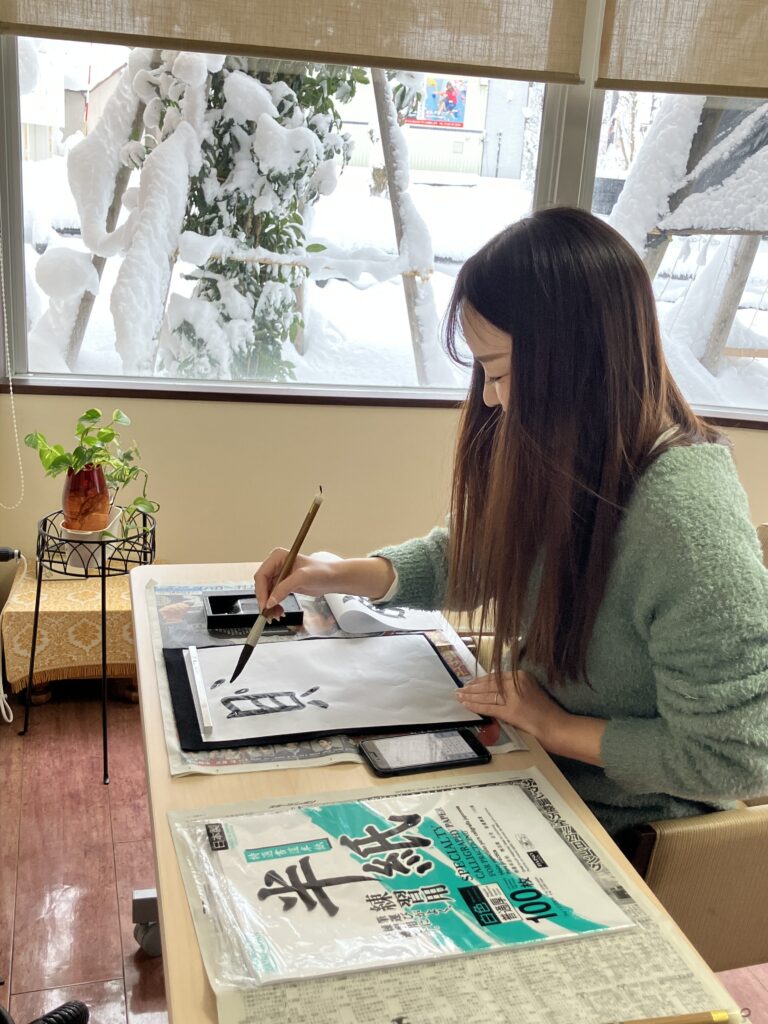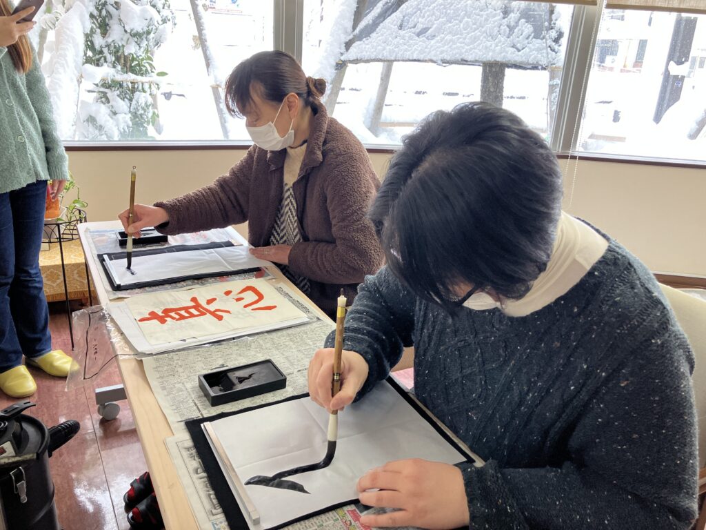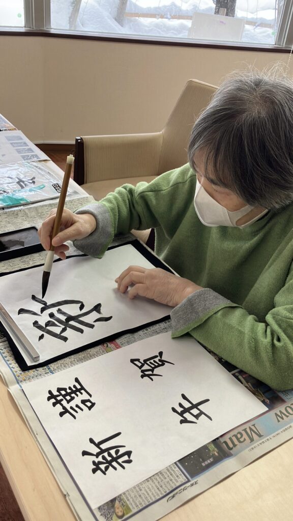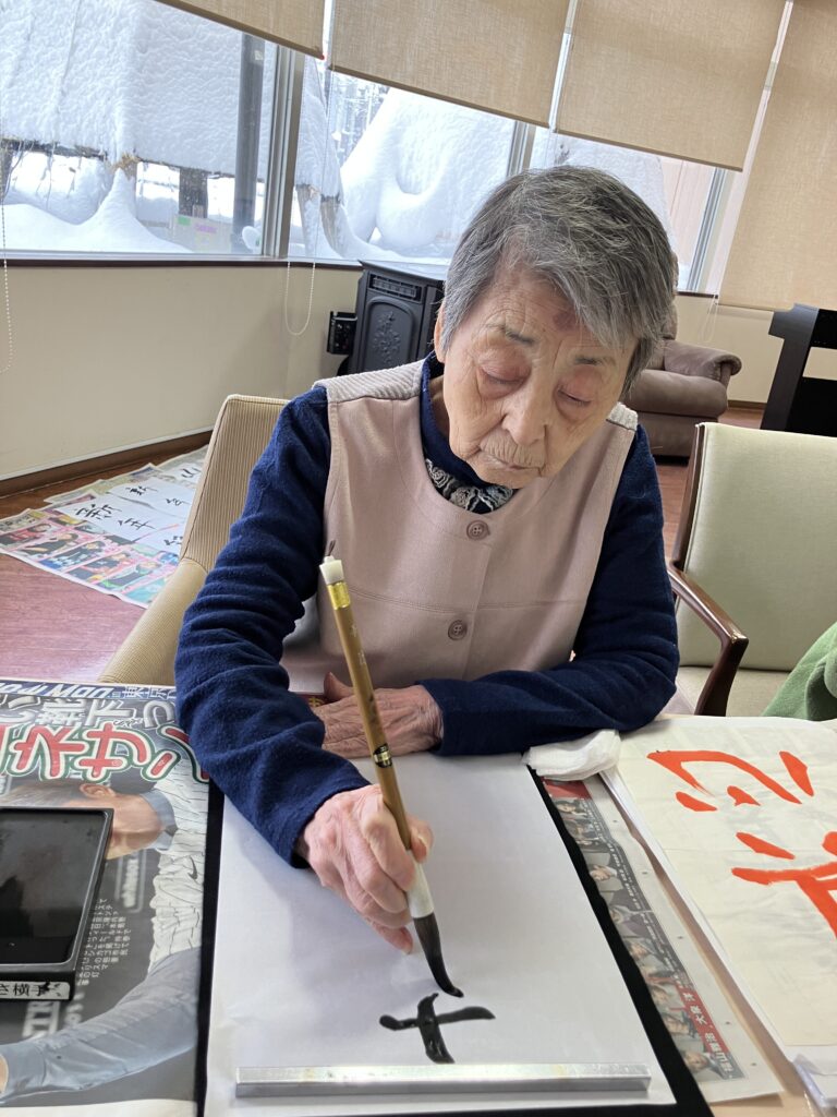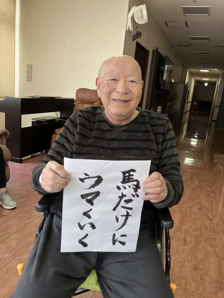 新年の挨拶を交わし合い、ロビーにて書き初めを楽しみました!皆さん今年の目標や、思い思いの言葉を書いて大笑い(≧∀≦)