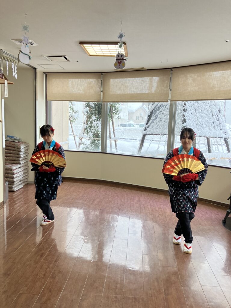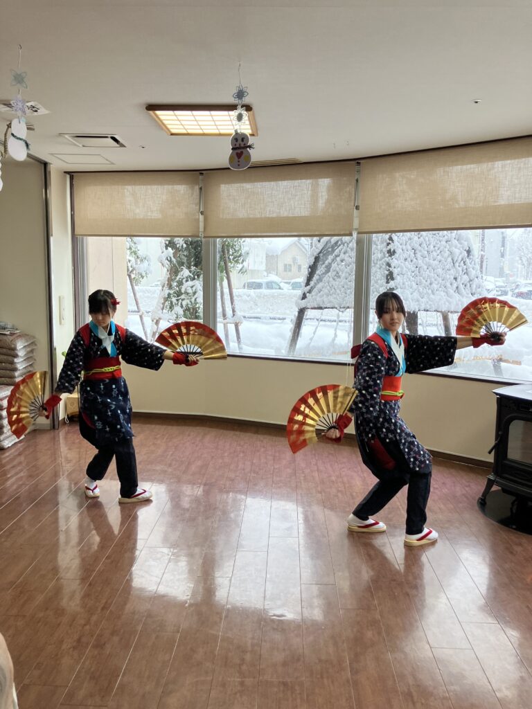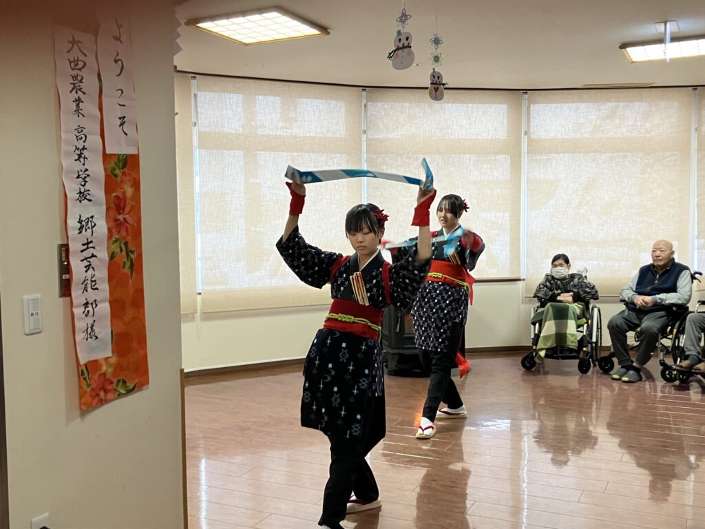 先日、大曲農業高等学校の郷土芸能部の1年生の皆様が、演芸を披露しにきてくださいました✨
