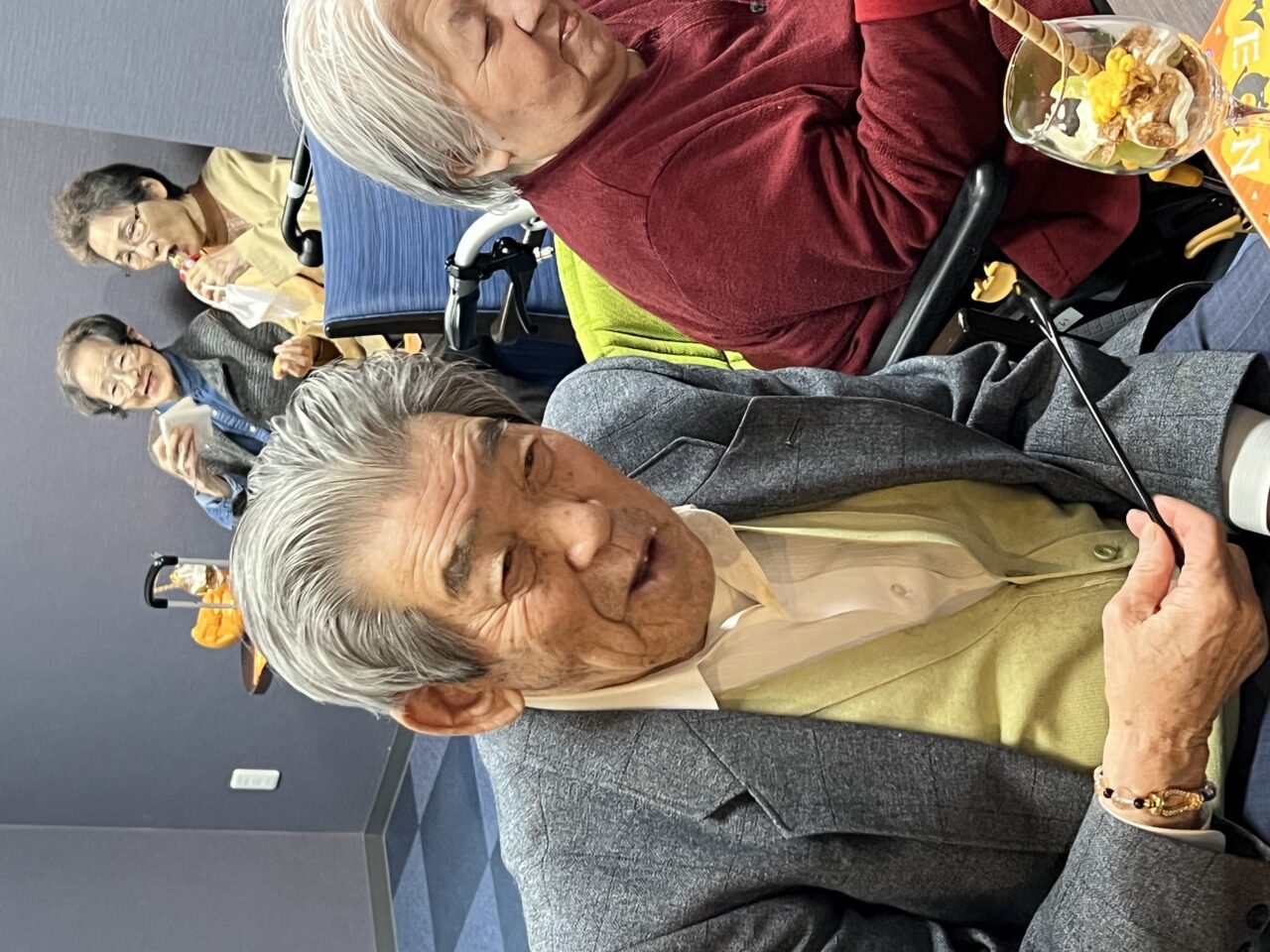 果物やチョコフレークを使った職員特製パフェ…利用者の皆さんは来てくれるのかな…そわそわしていると