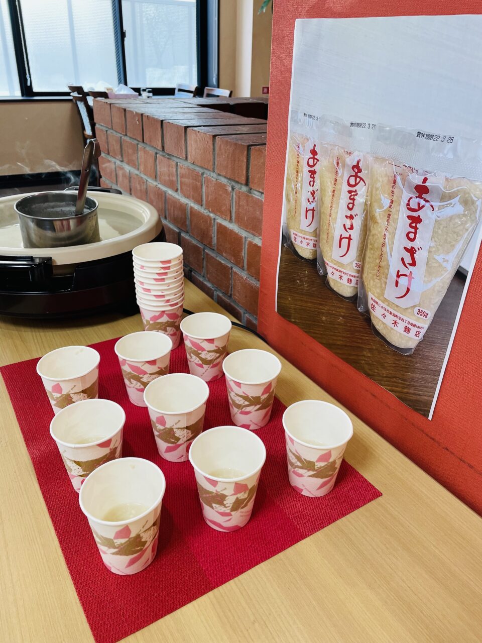 待って待って?象潟町佐々木麹店の甘酒もどうぞ?✨