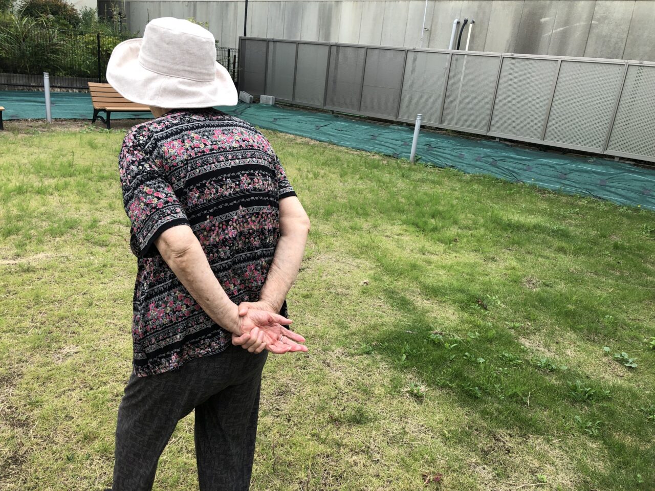 自粛期間中はフロアの廊下を往復され、歩行訓練を続けられていましたが、「やっぱり、外の風やお日様にあたりながらの方が気持ちいいし、やる気になるなやな」とおっしゃっております。