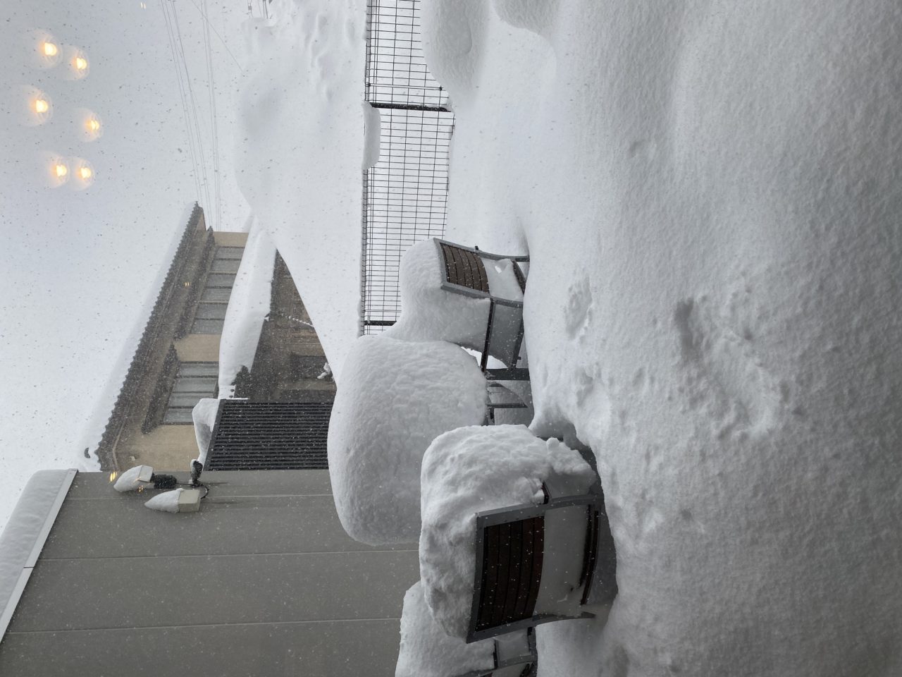 テーブルの上にはすでにかまくらが出来上がってるし、椅子やブロックにもこんもり積もって、もう…ね。