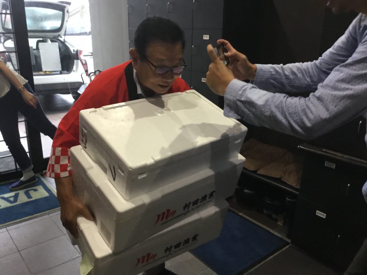 法被を羽織った山田部長が、お刺身を届けて下さいました??❣️