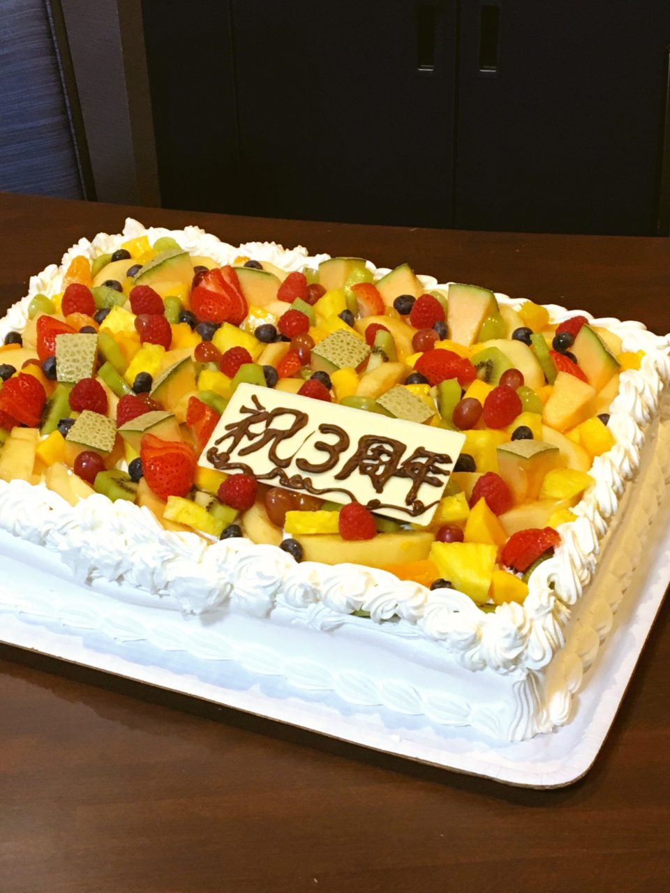 そして午後からは佐賀ケーキ班長、渡部パートナー、阿部パートナー、多美子パートナー、大友パートナーが全身全霊の気合と無限の愛情を込めてデコレーションしてくださった「3周年スペシャルアニバーサリーケーキ」を公開&実食?