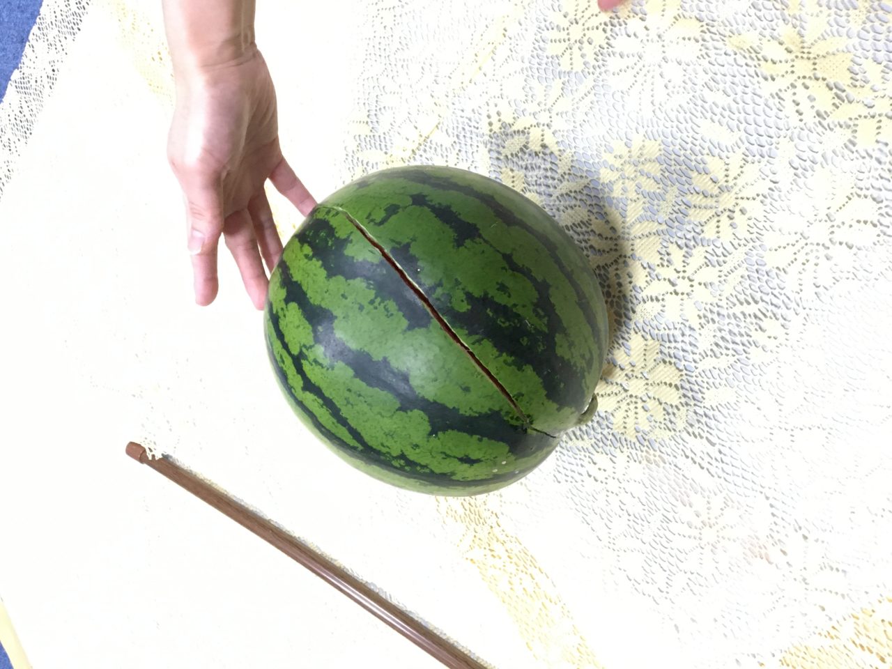 急すぎてスイカ割りに使用した棒が突っ張り棒である事を、、