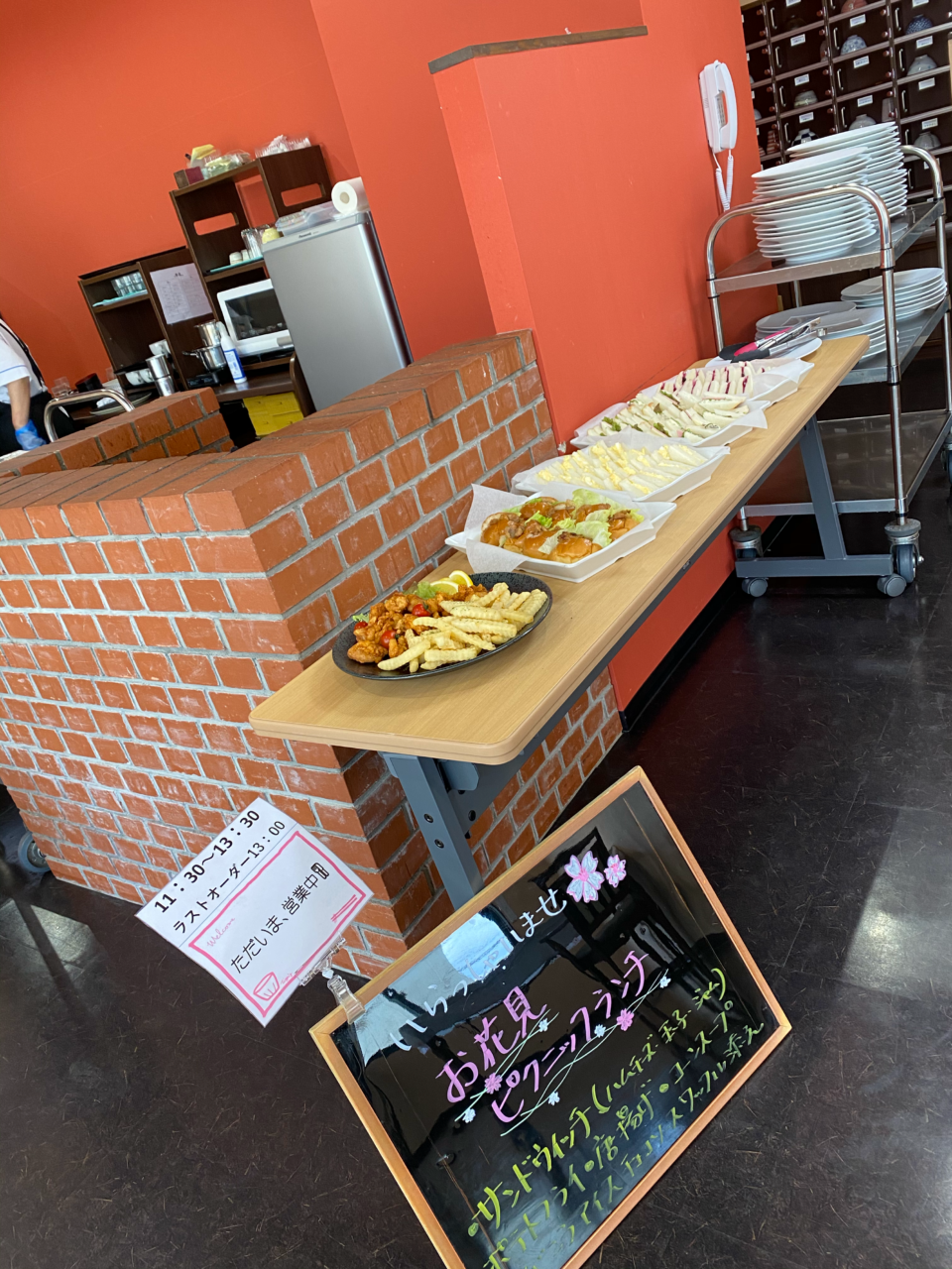 皆さんのために何か企画ができないかと、本日お花見ピクニック風ランチを提供させて頂きました??
