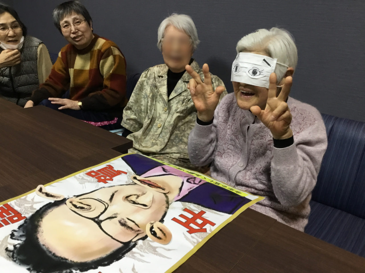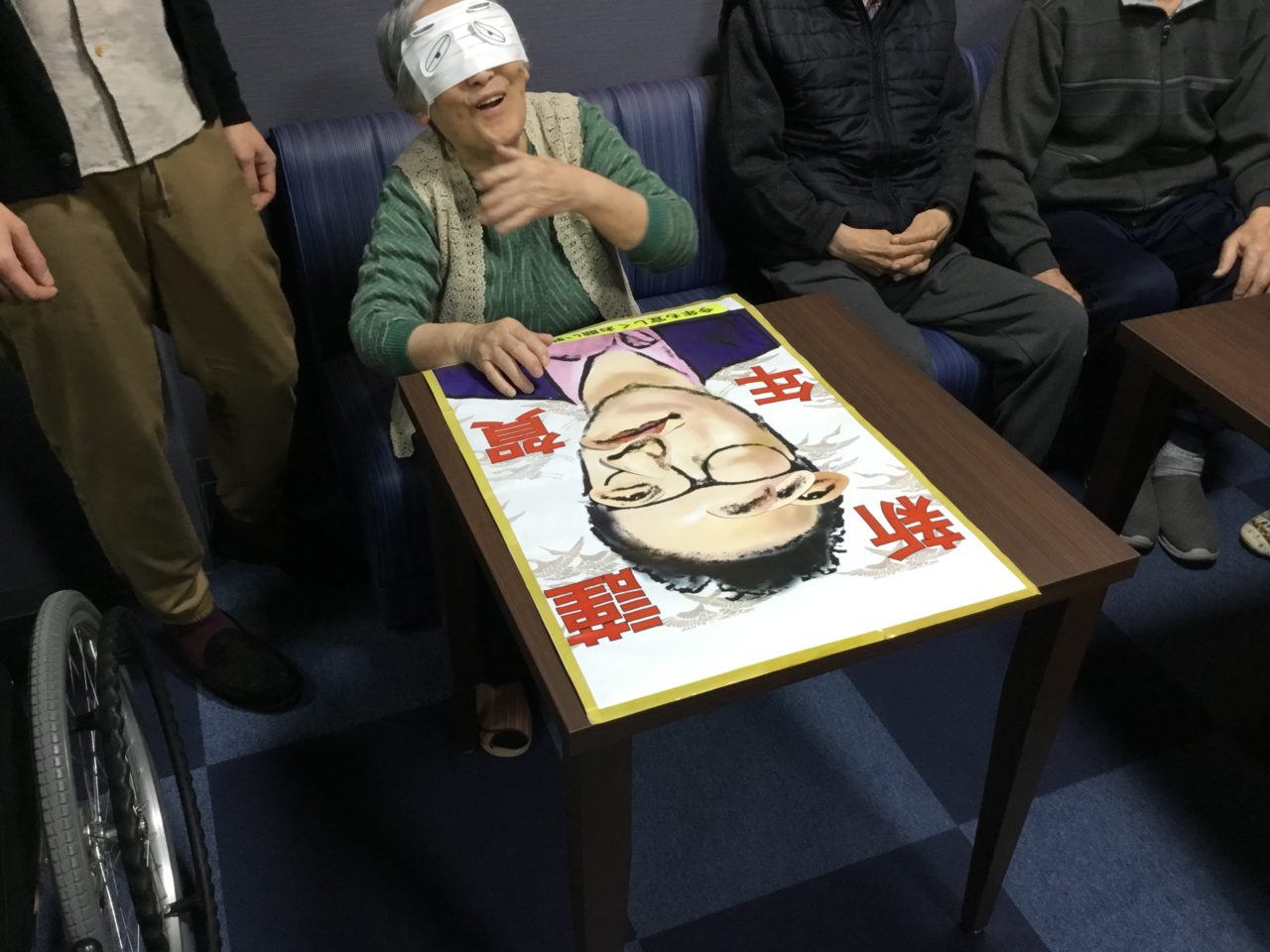 施設長小川の顔を目隠しして組み上げていくんですが景品がある以上こちらも不正がないよう徹底した用意をさせていただきました。