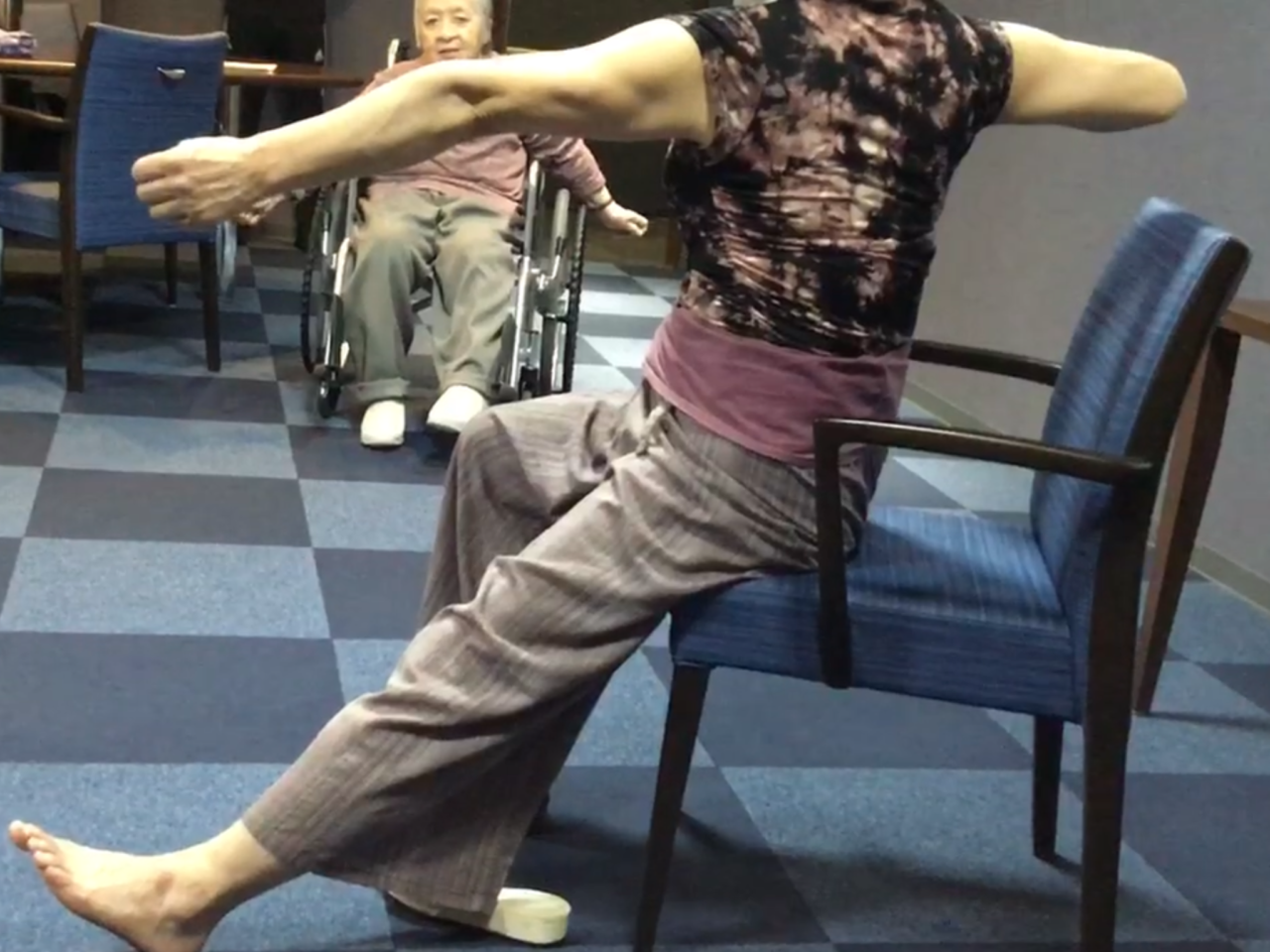 先生の手本を見よう見まねで、手や肩のストレッチを頑張ってました☺️