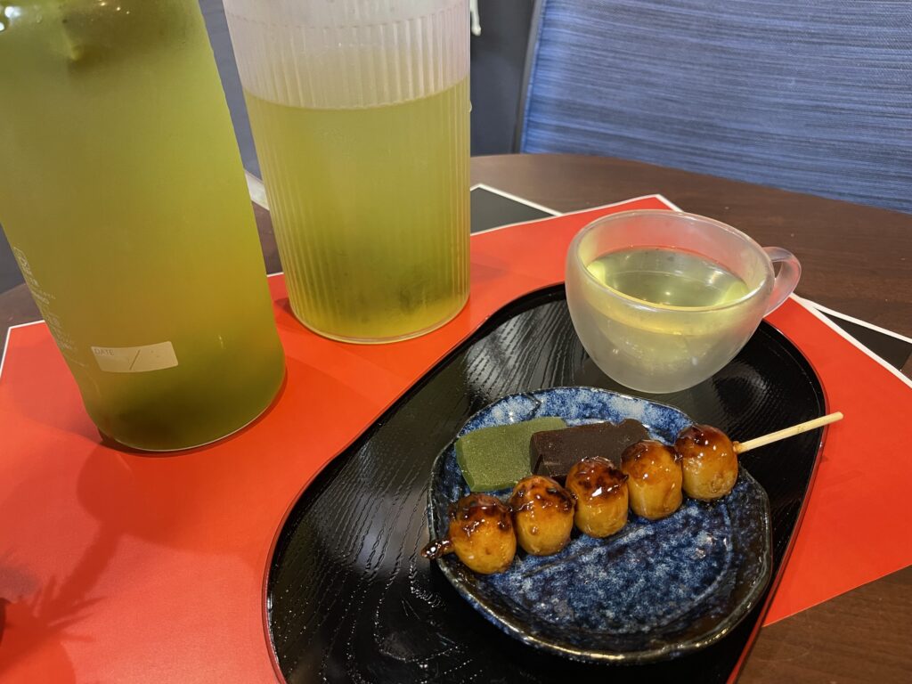 少し暑かったので、一緒に用意した水出し緑茶もとても捗りました。
