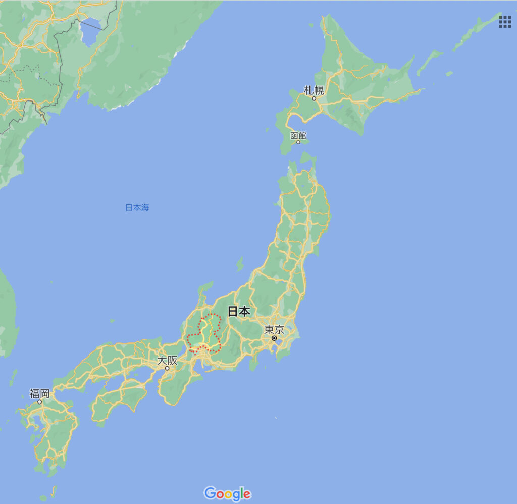 岐阜県は日本地図では大まかに真ん中辺りに位置する内陸県。