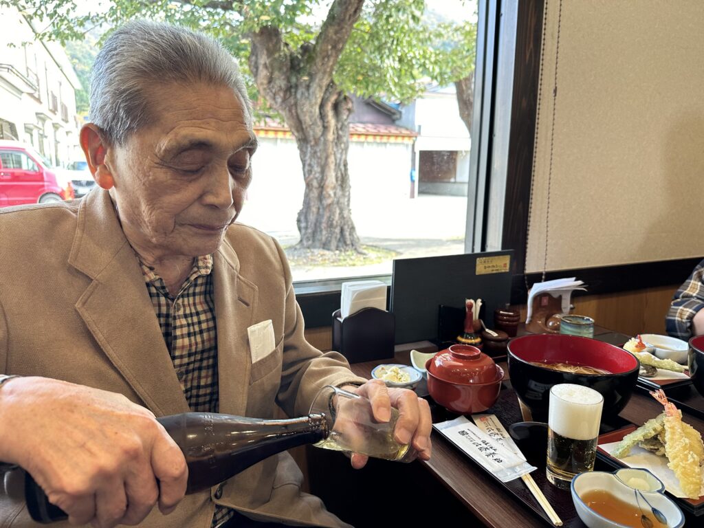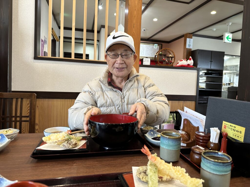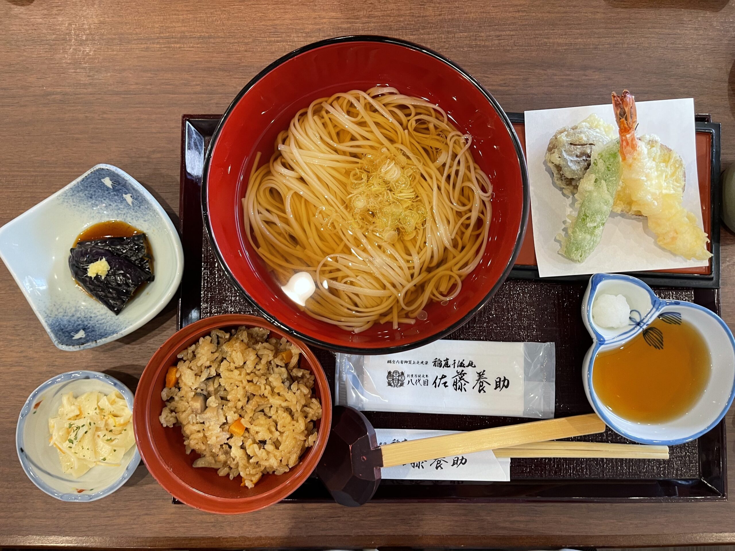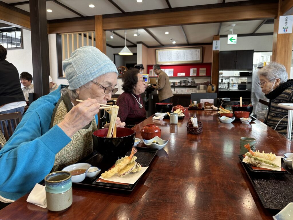 道の駅を出発し、皆さんお腹も空いてきたのでお楽しみの総本店の近くの支店の稲庭うどん八代目佐藤養助商店さんへ。メインの稲庭うどんをはじめ天ぷら、炊き込みご飯、茄子の素揚げ、稲庭うどんの切れ端を使ったサラダ、もっちりとしたマカロニみたいで美味しかったです✨