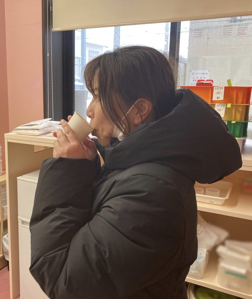 いつも来ていただいている薬剤師の先生、ヤクルトさんにも飲んで頂き、温まってもらいました。大雪の寒い中、来て頂きありがとうございます?