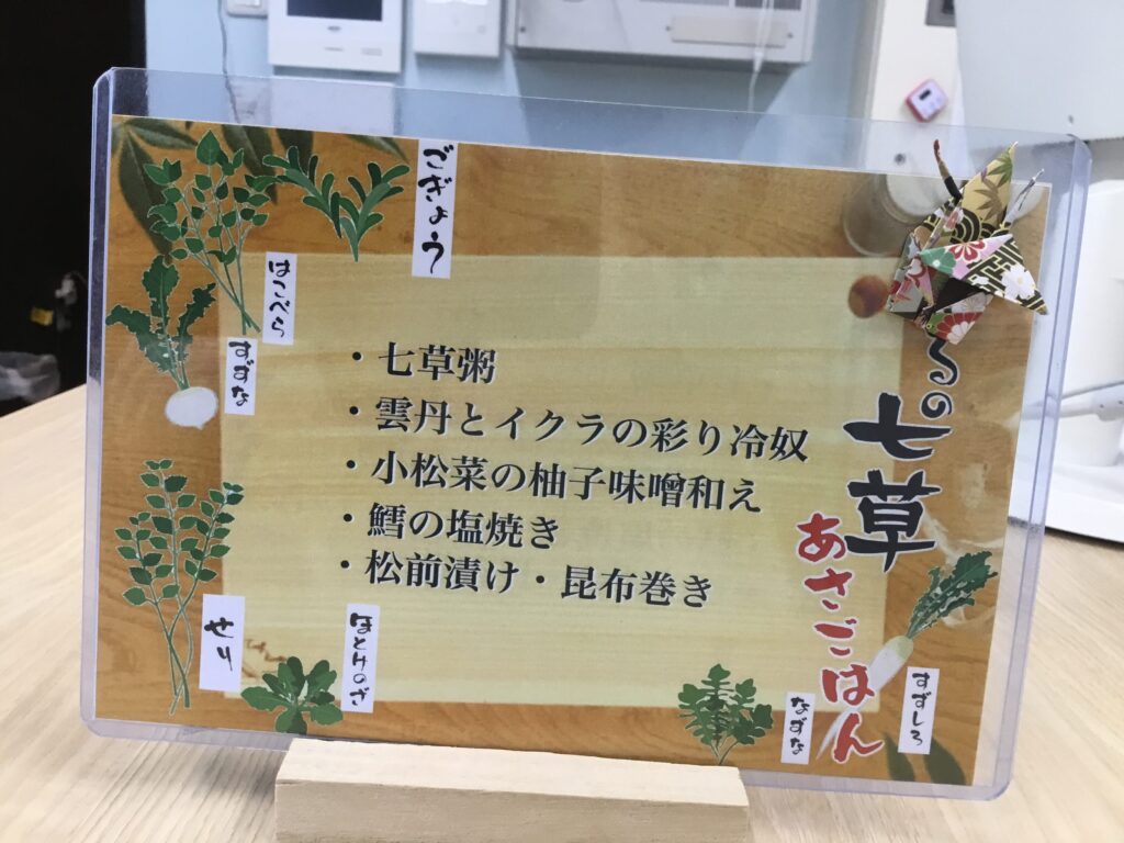 利用者のみなさんも今日は七草粥を食べ、今年1年の長寿健康と無病息災を祈りました?