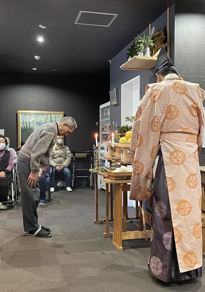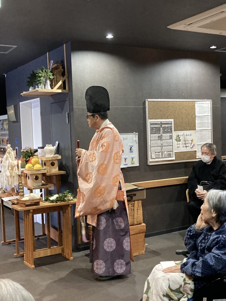 利用者さんには神主さんが見える様に座って頂きました。
