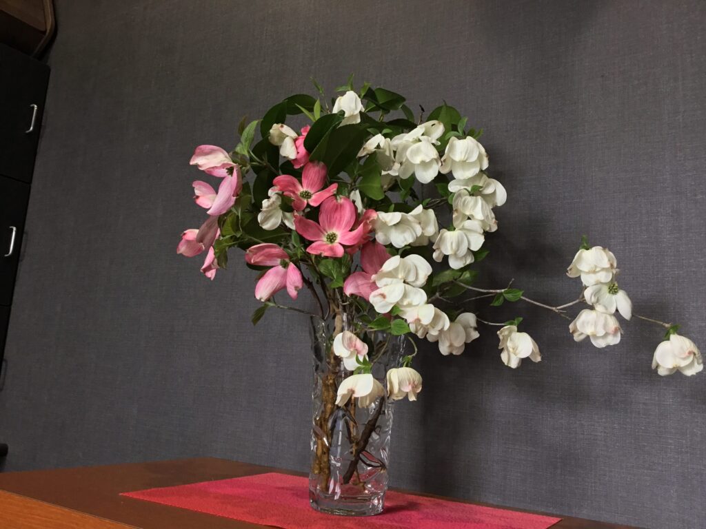 毎朝玄関に来てはお花の配置を直してお手入れをして下さったり、利用者さん同士の会話に上がったりしており、利用者さんになにかと気にかけて頂いているスポットです。先月には桜の切り枝を飾ったりして季節を感じていただいておりました。