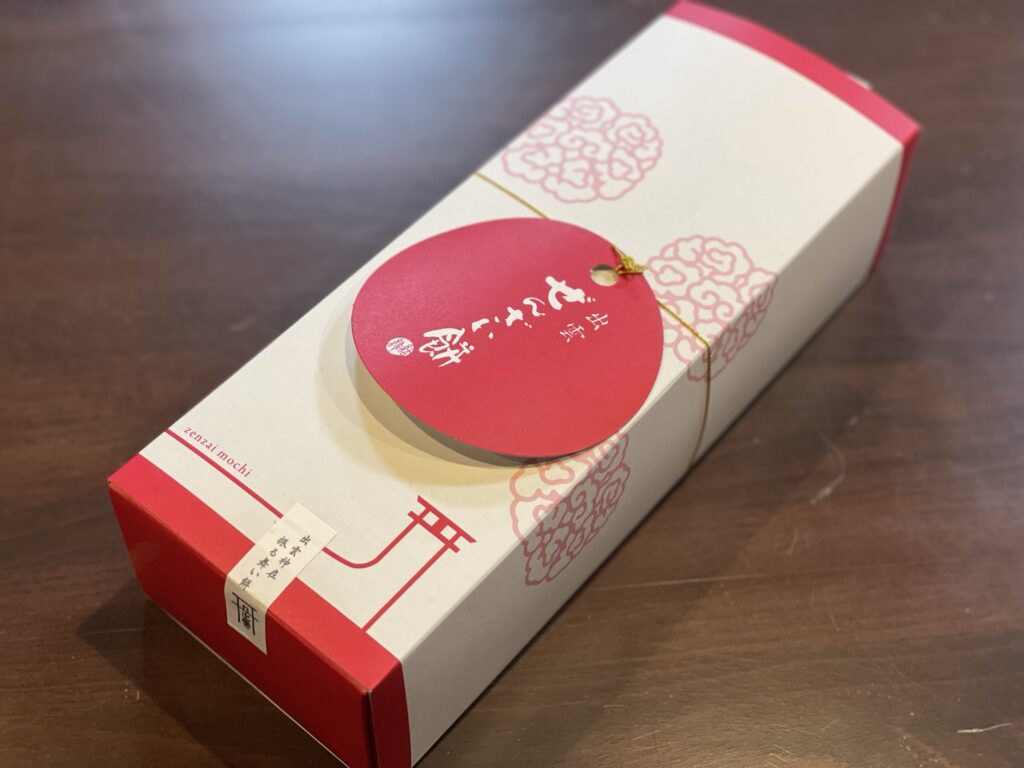 ご縁の町、出雲大社正門前限定で販売している縁起の良いぜんざい餅。