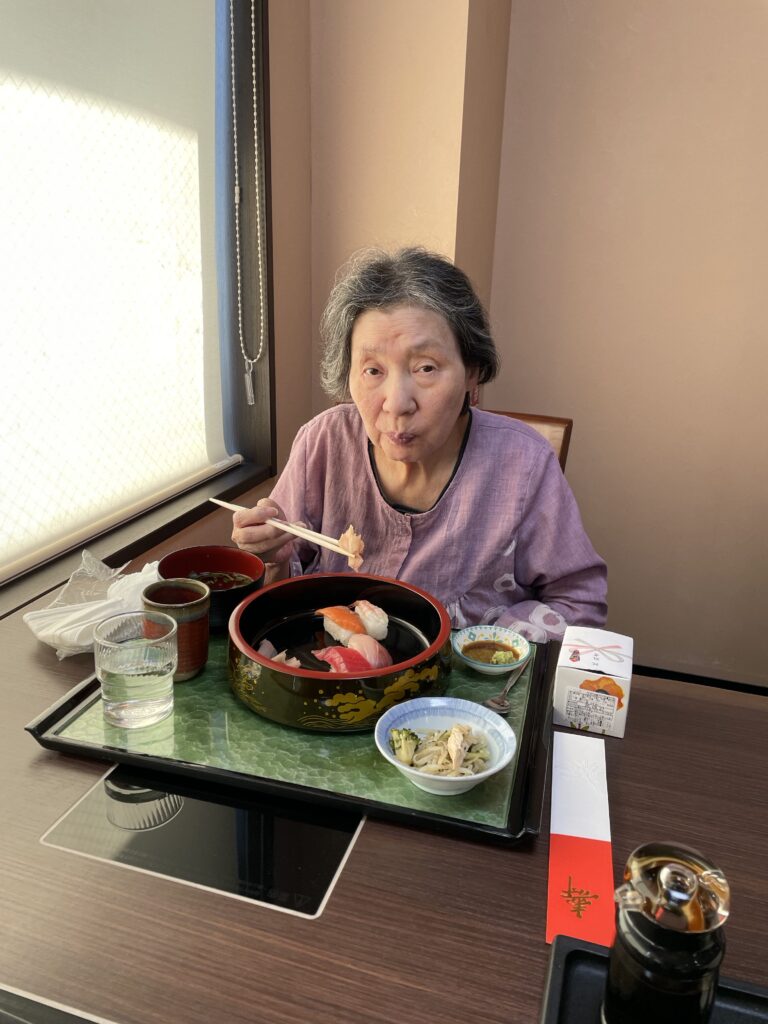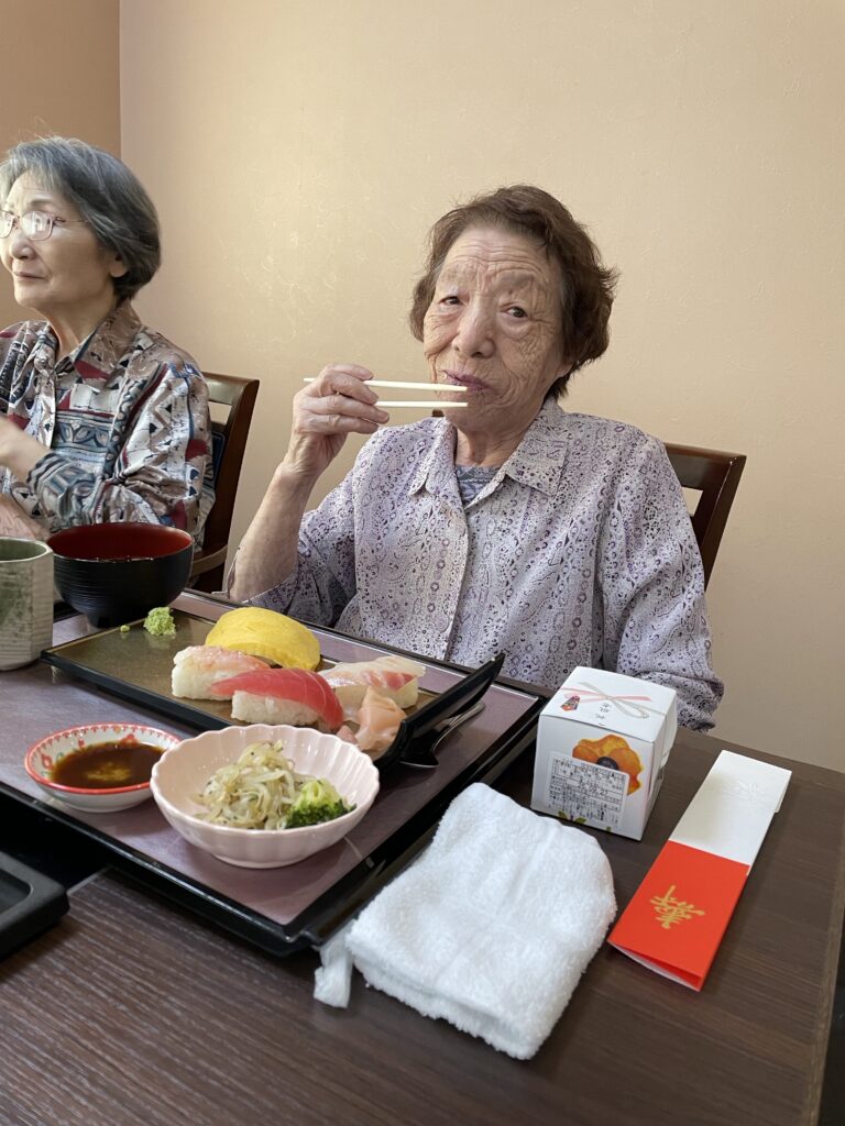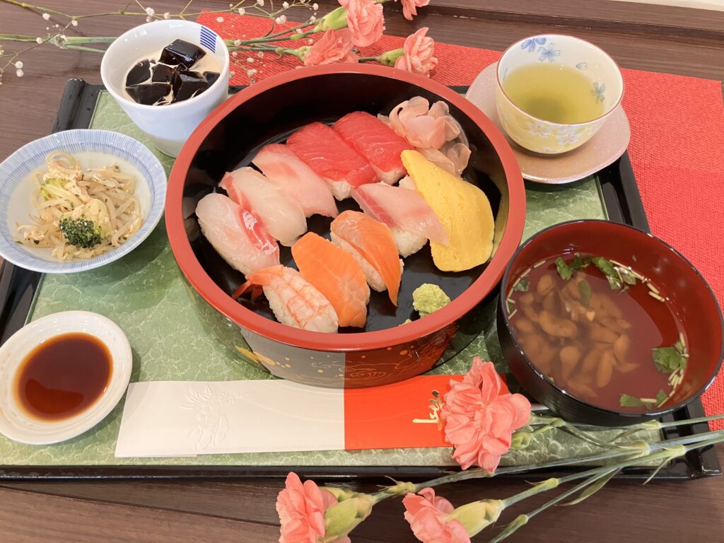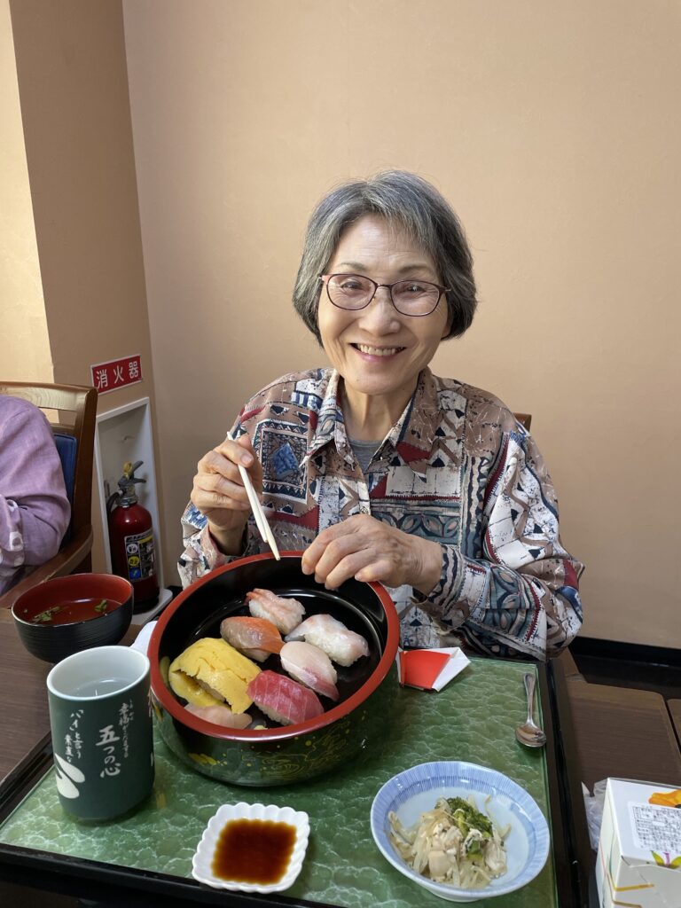 お寿司ランチとプレゼントに、皆さん素敵な笑顔が溢れてますね😊😊😊