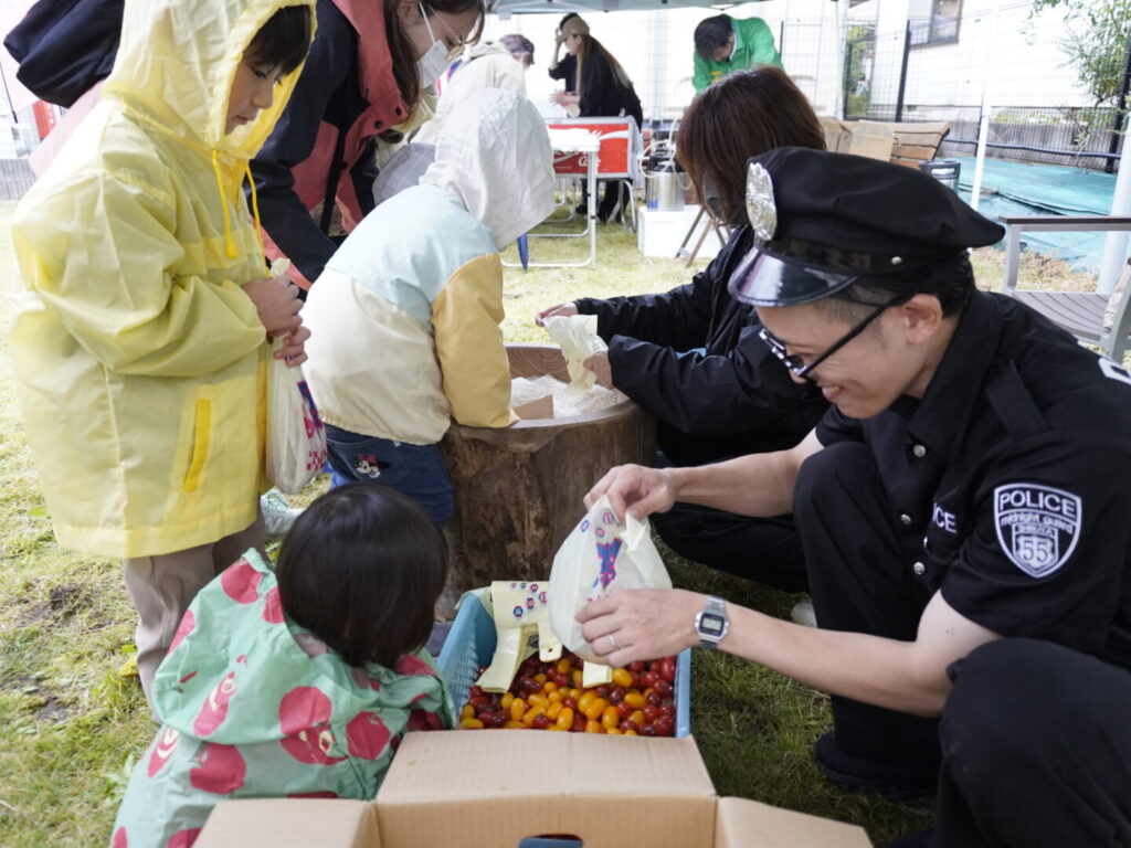 ちっちゃな手で頑張ってミニトマトをすくって袋にいれようとするちびっ子たちの姿がなんとも可愛らしい…!!