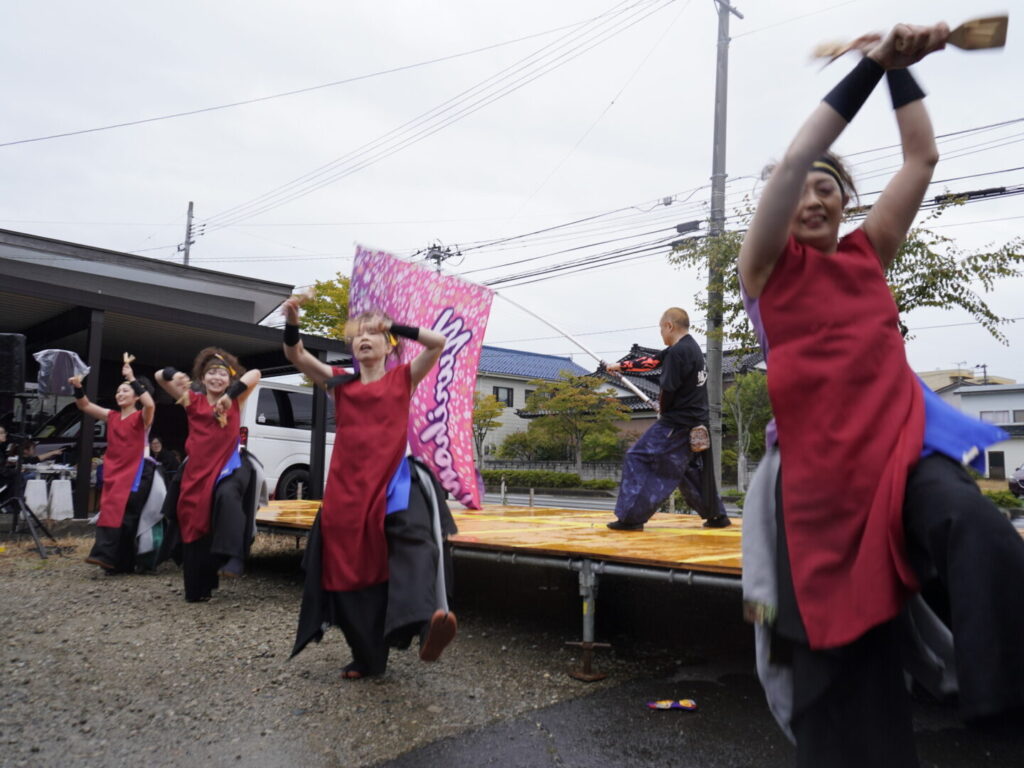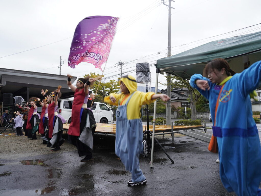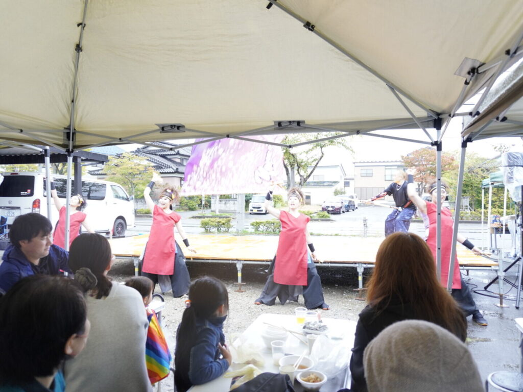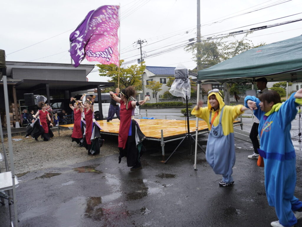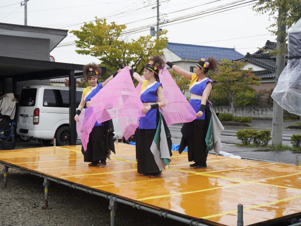 よさこいチームの由利本荘いなせ組の皆さんと、三味線奏者の清翔会の皆さんのご厚意で2チームの方々が来てくださったのですが、雨模様の中での三味線が難しいとのことで、今回はいなせ組の皆さんに盛り上げて頂きました!