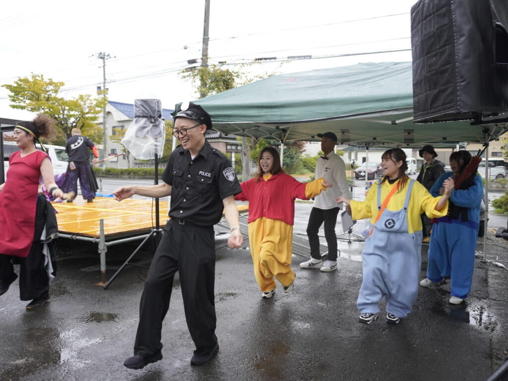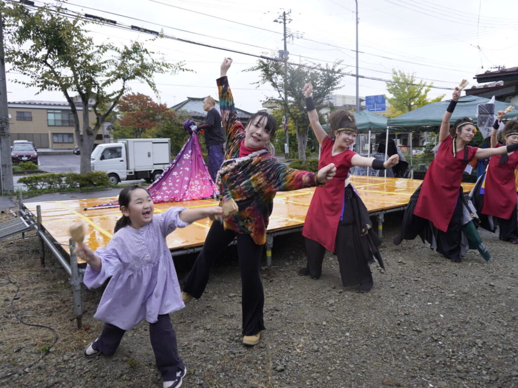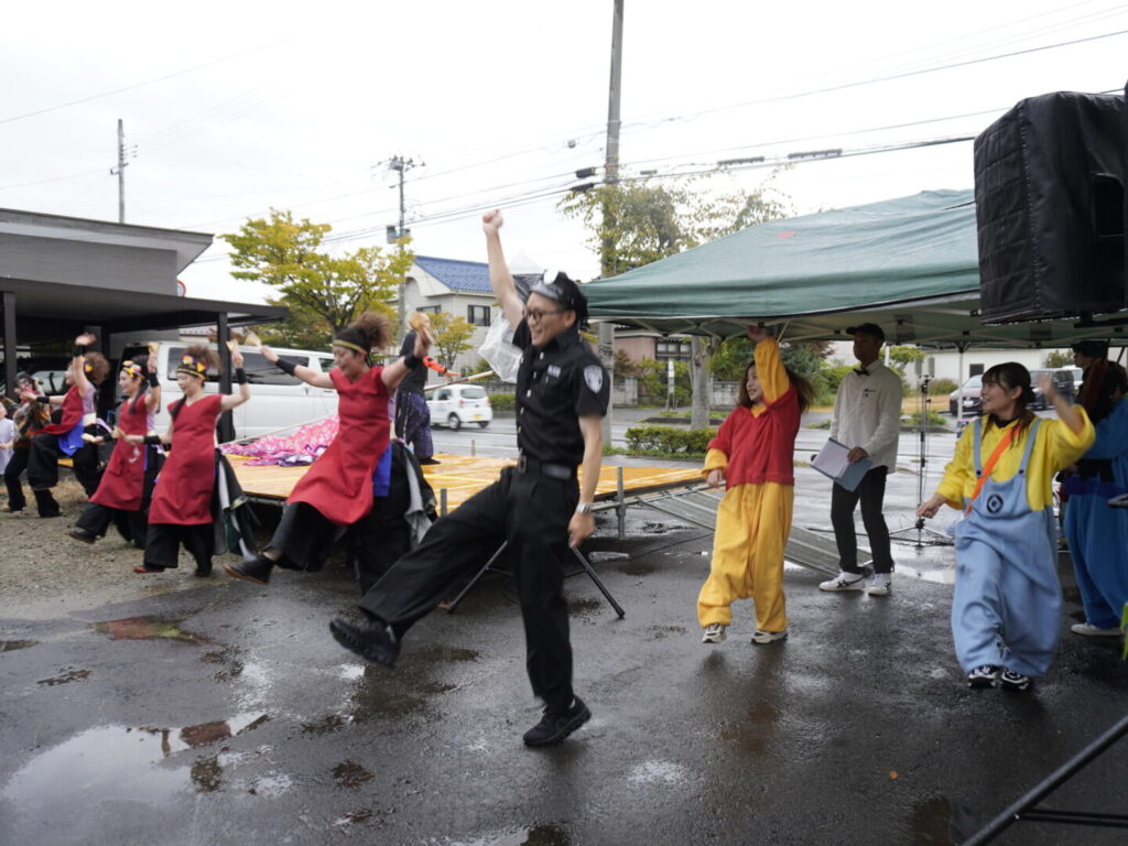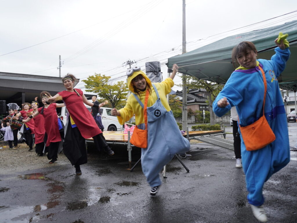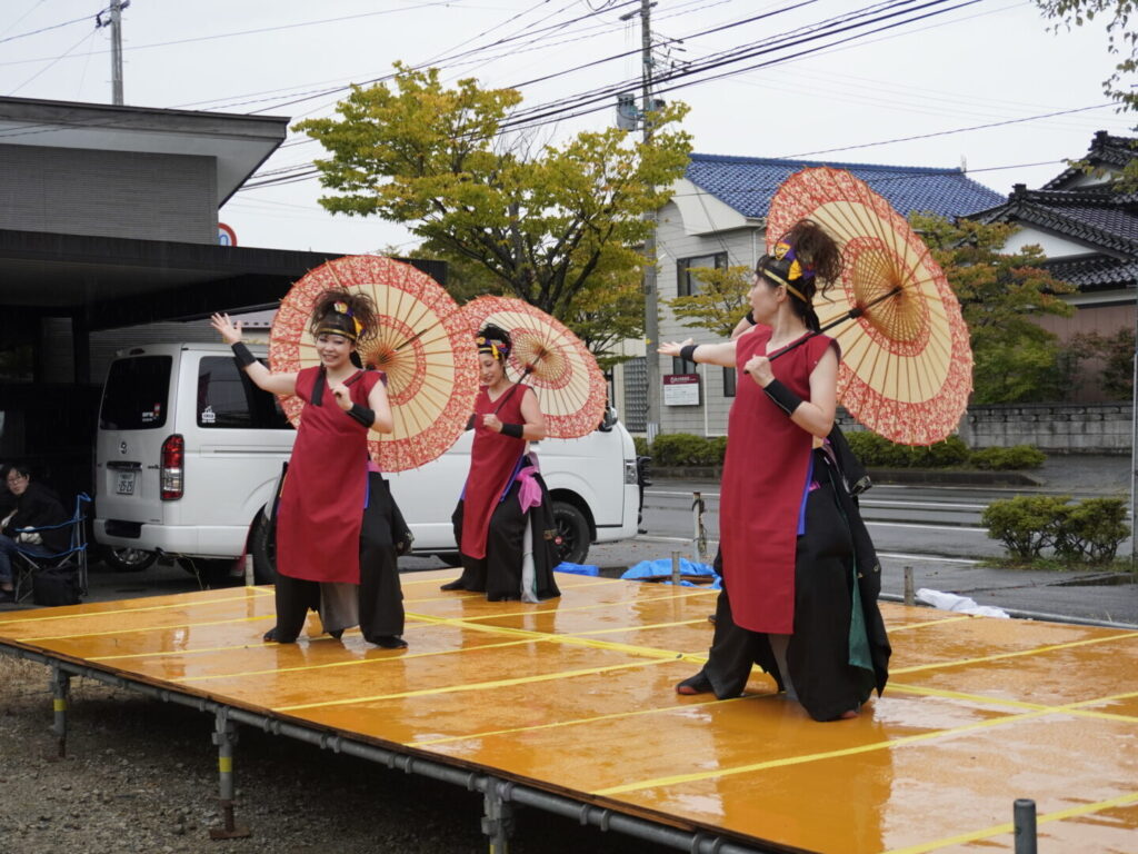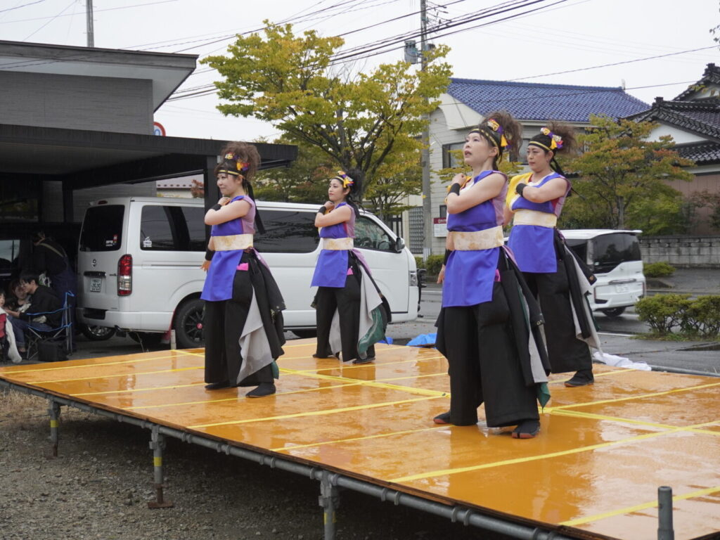 よさこいチームの由利本荘いなせ組の皆さんと、三味線奏者の清翔会の皆さんのご厚意で2チームの方々が来てくださったのですが、雨模様の中での三味線が難しいとのことで、今回はいなせ組の皆さんに盛り上げて頂きました!