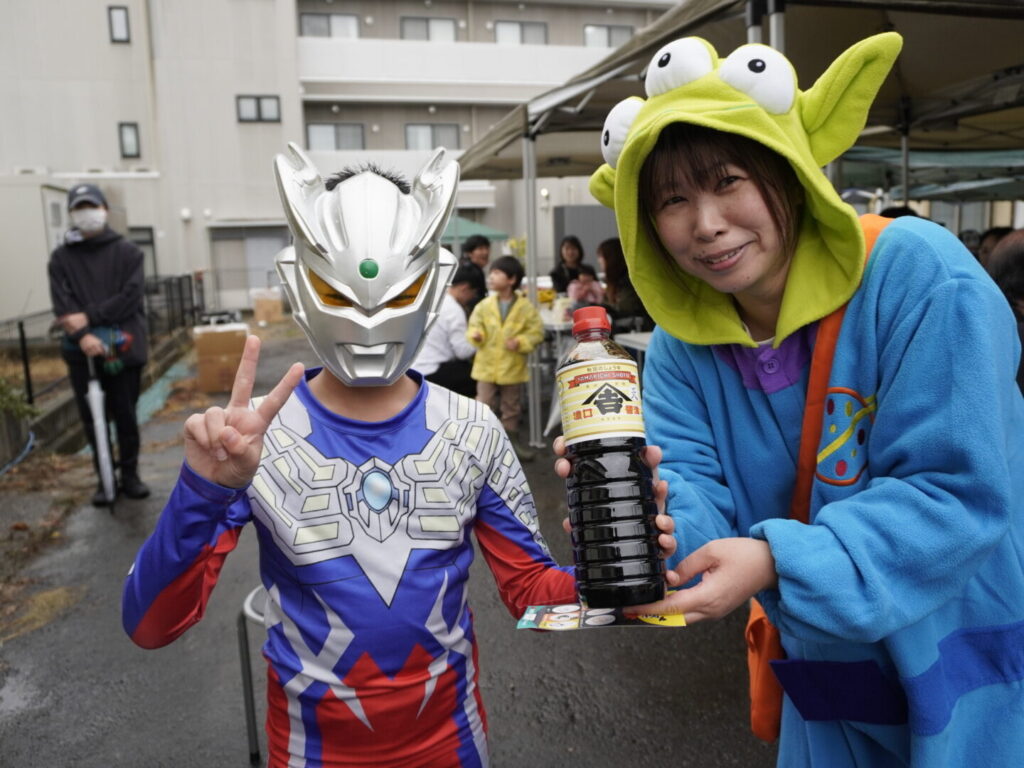 遠くにいても分かるびっくりチキンの佐々木施設長の仮装に来場者の皆さんからも好評でしたが、今回の収穫祭ではちびっ子たちの中にも仮装した子がちらほらといたのですが、お気づきになりましたか?