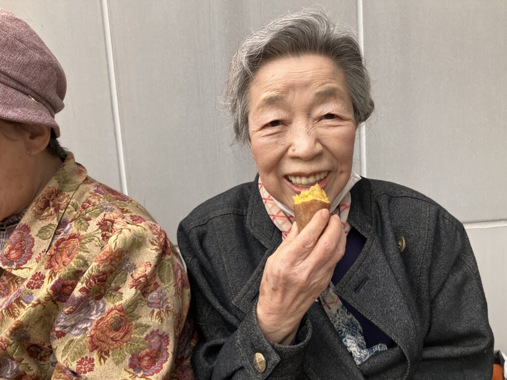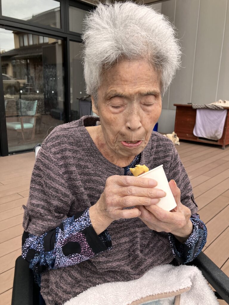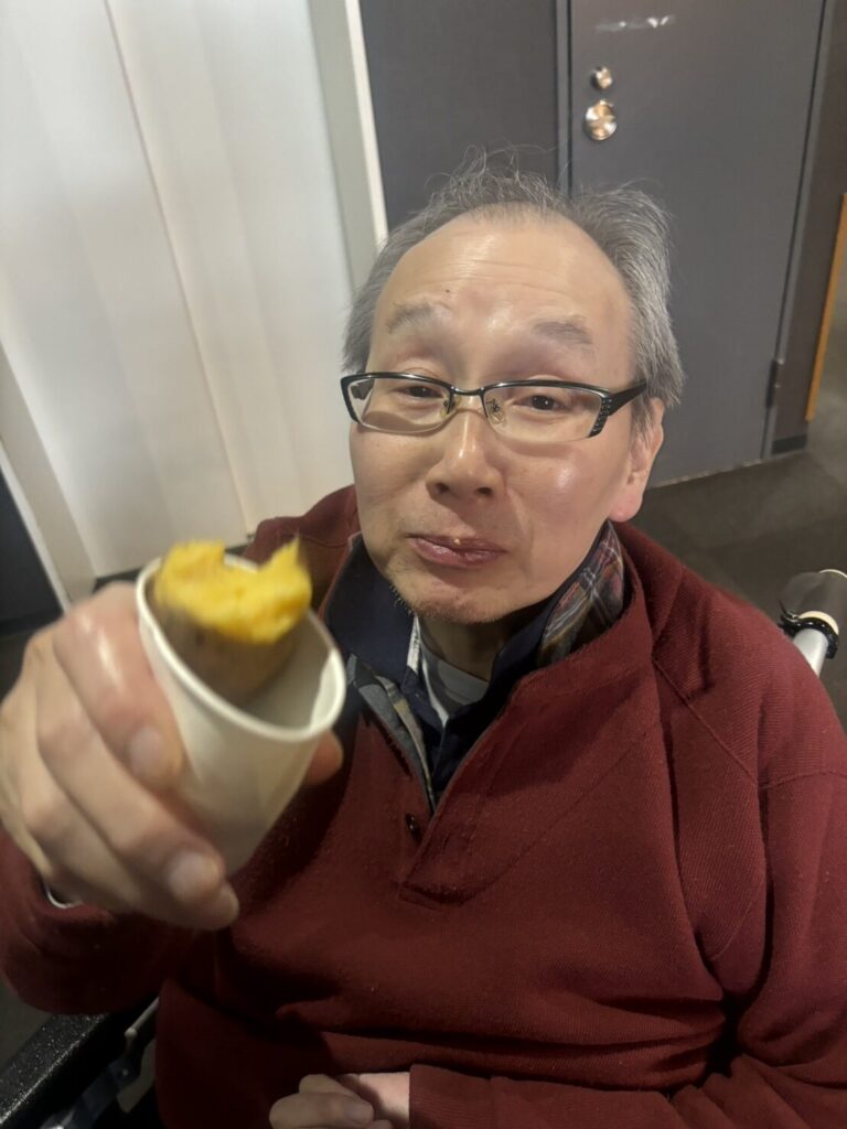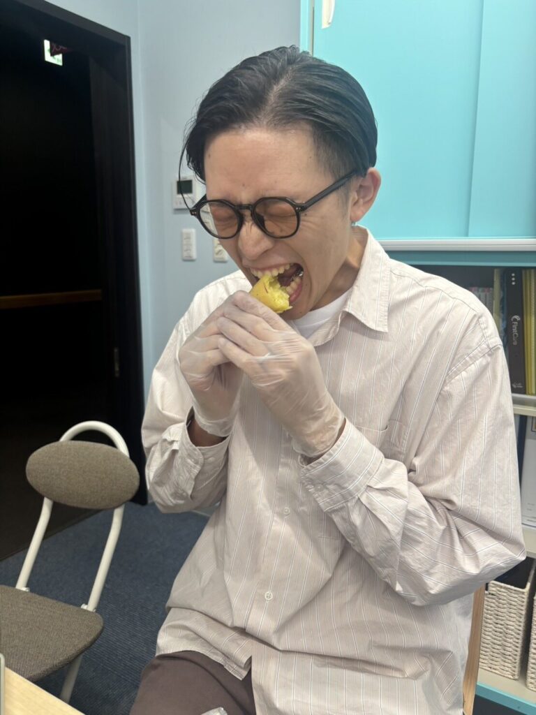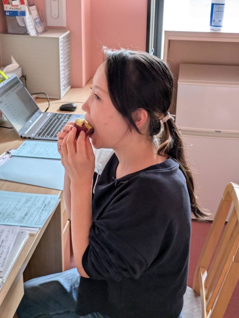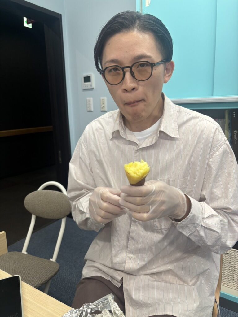 お二人の利用者さんが食べていたさつま芋は黄色い感じでおそらく『五郎島金時』だったんだと思いますが、これは少しほくっとした感じでカボチャとか栗に近い感じの甘味でした。